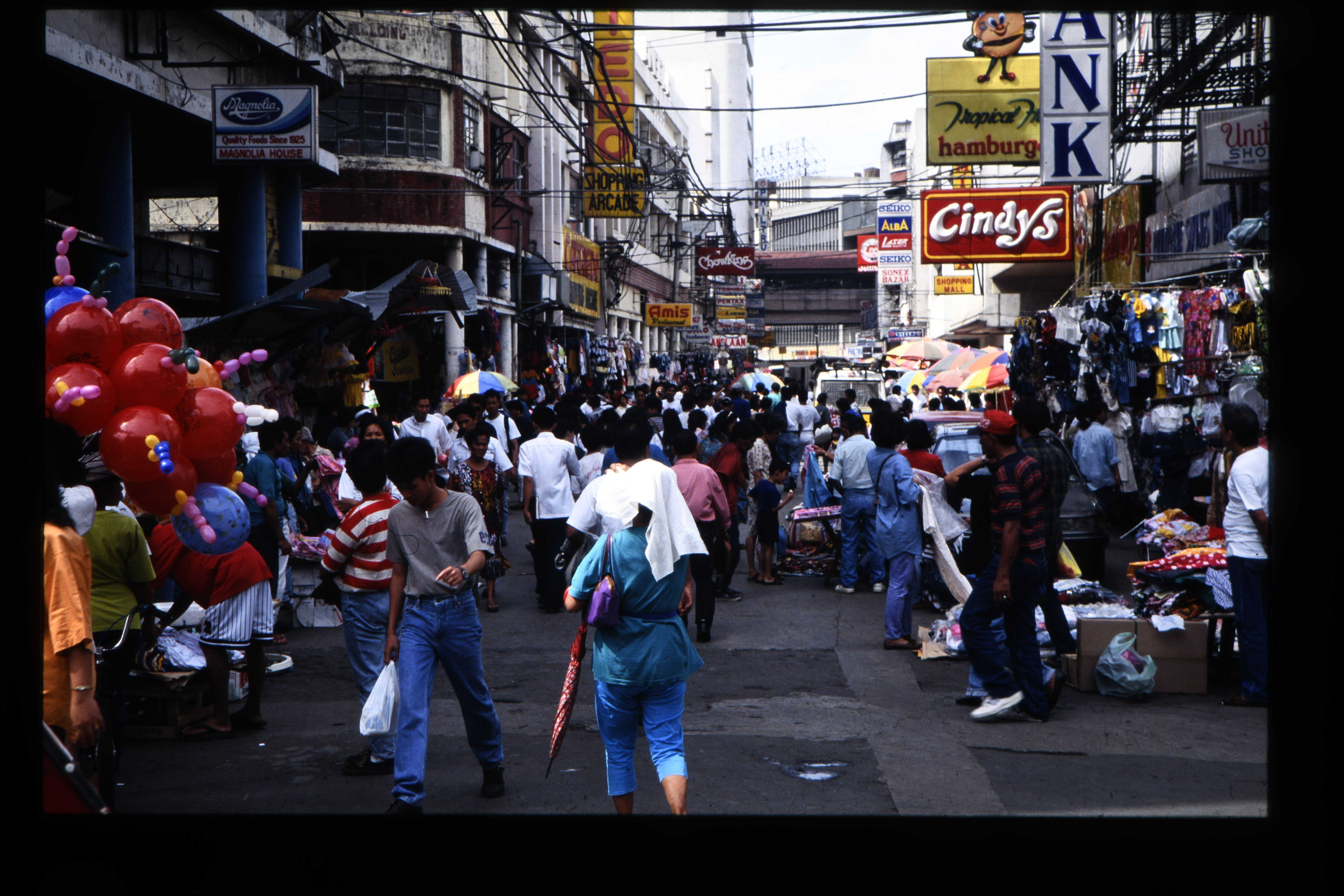 'Drukke winkelstraat in voetgangersgebied Manilla'