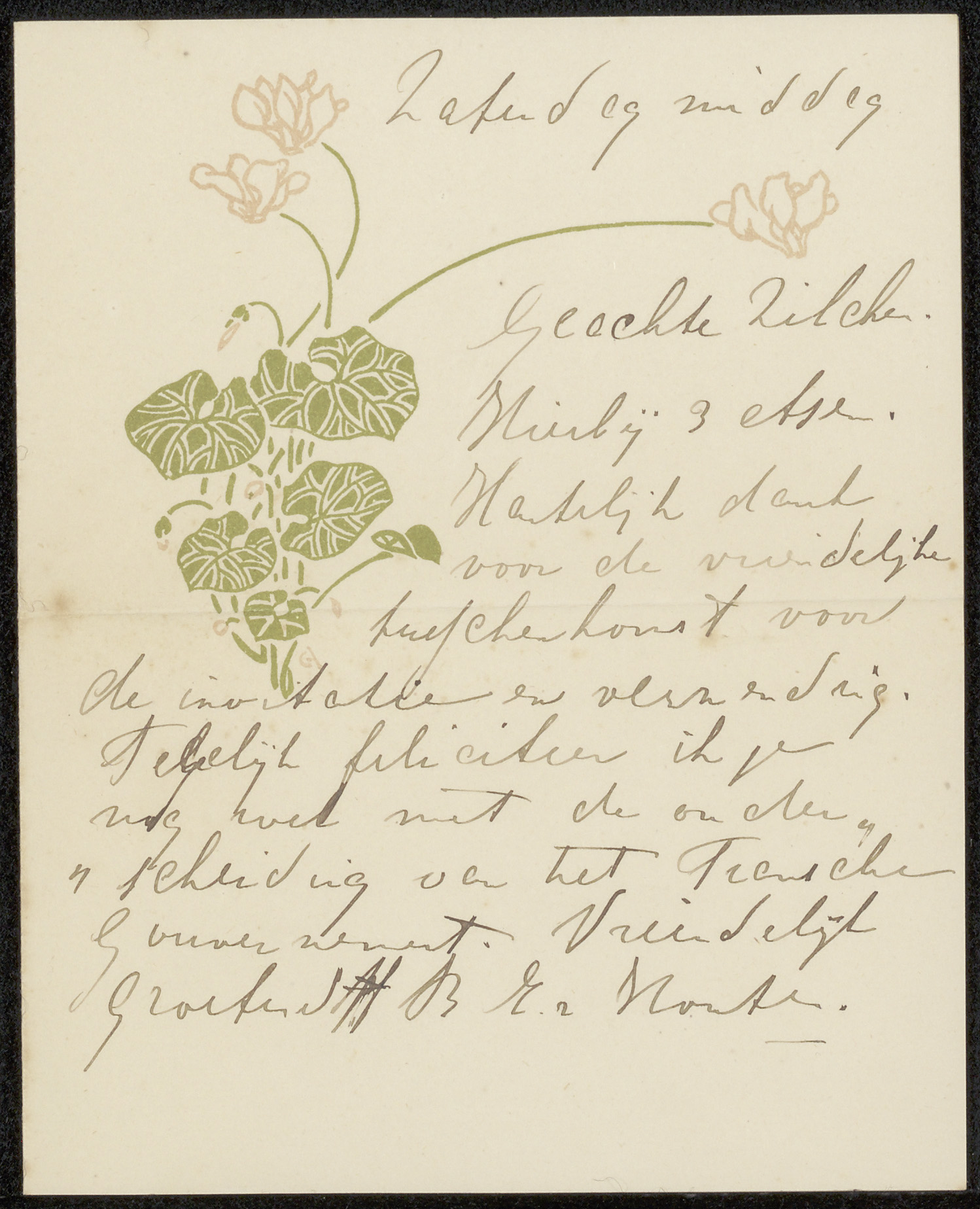 Brief aan Henriette Wilhelmina van Baak en Philip Zi...