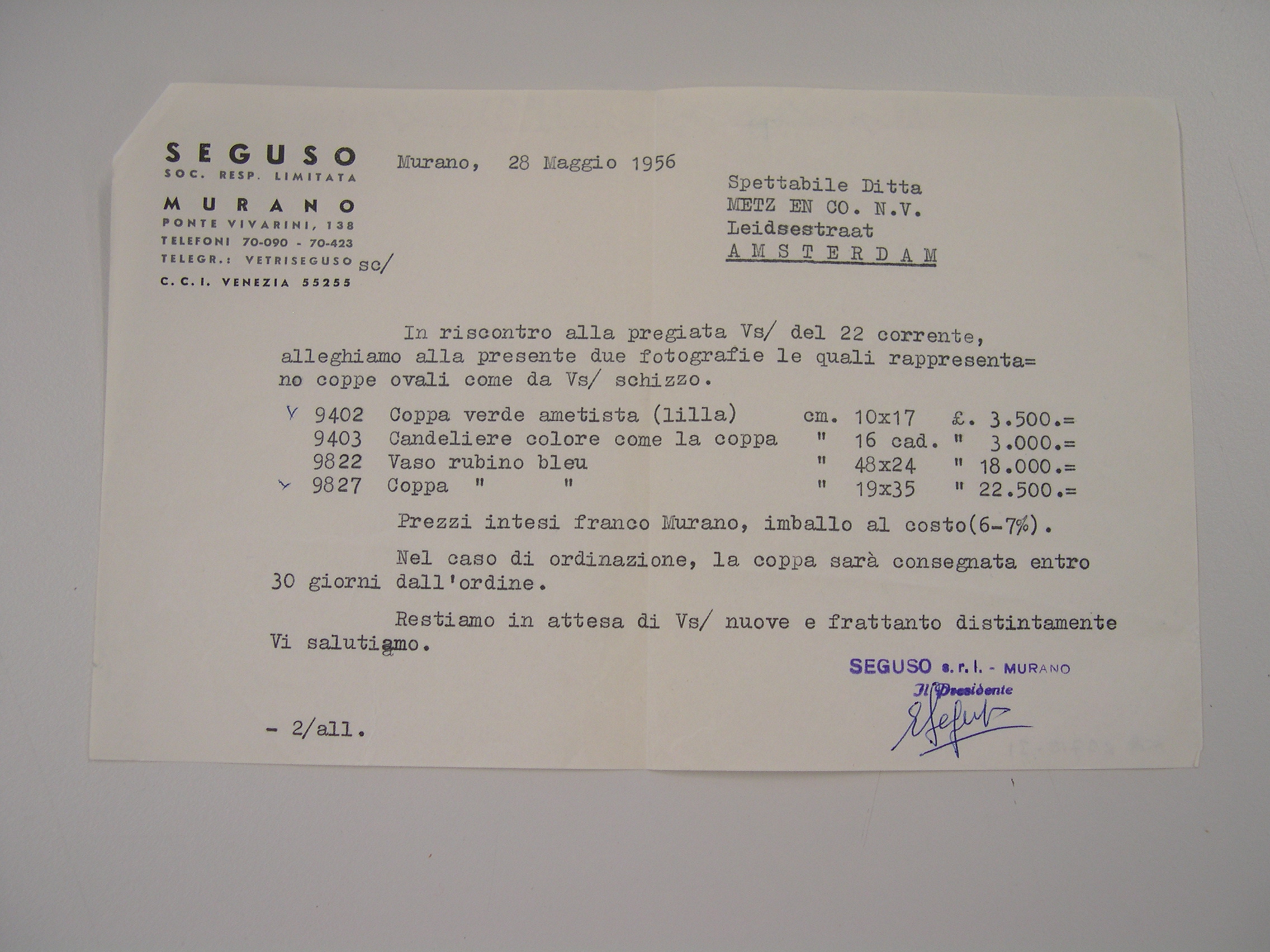 Prijslijst bij catalogus 'Orrefors 24'