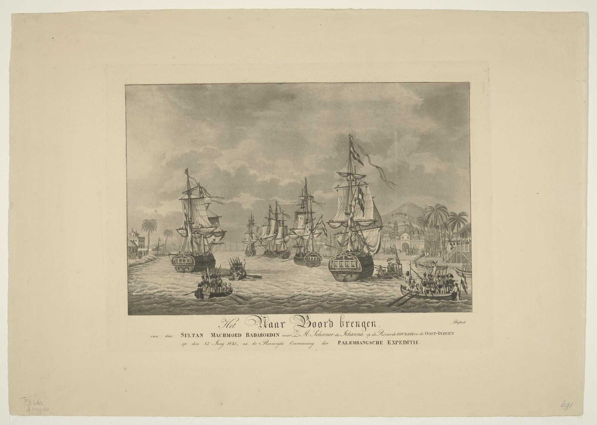 Het aan boord brengen van de sultan Machmoed Badaroe...