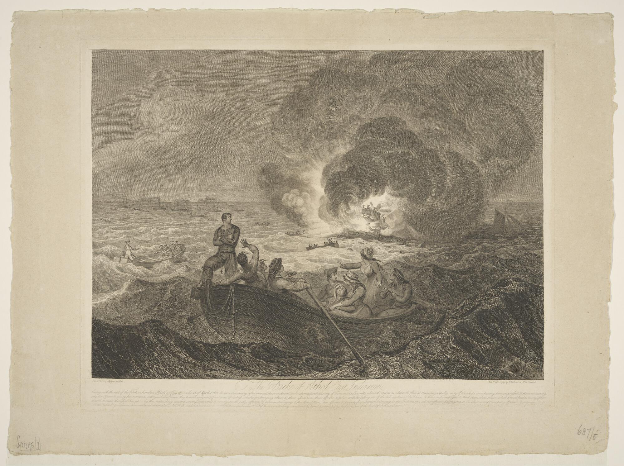 Het verbranden van de 'Duke of Athol', Engels OIC sc...
