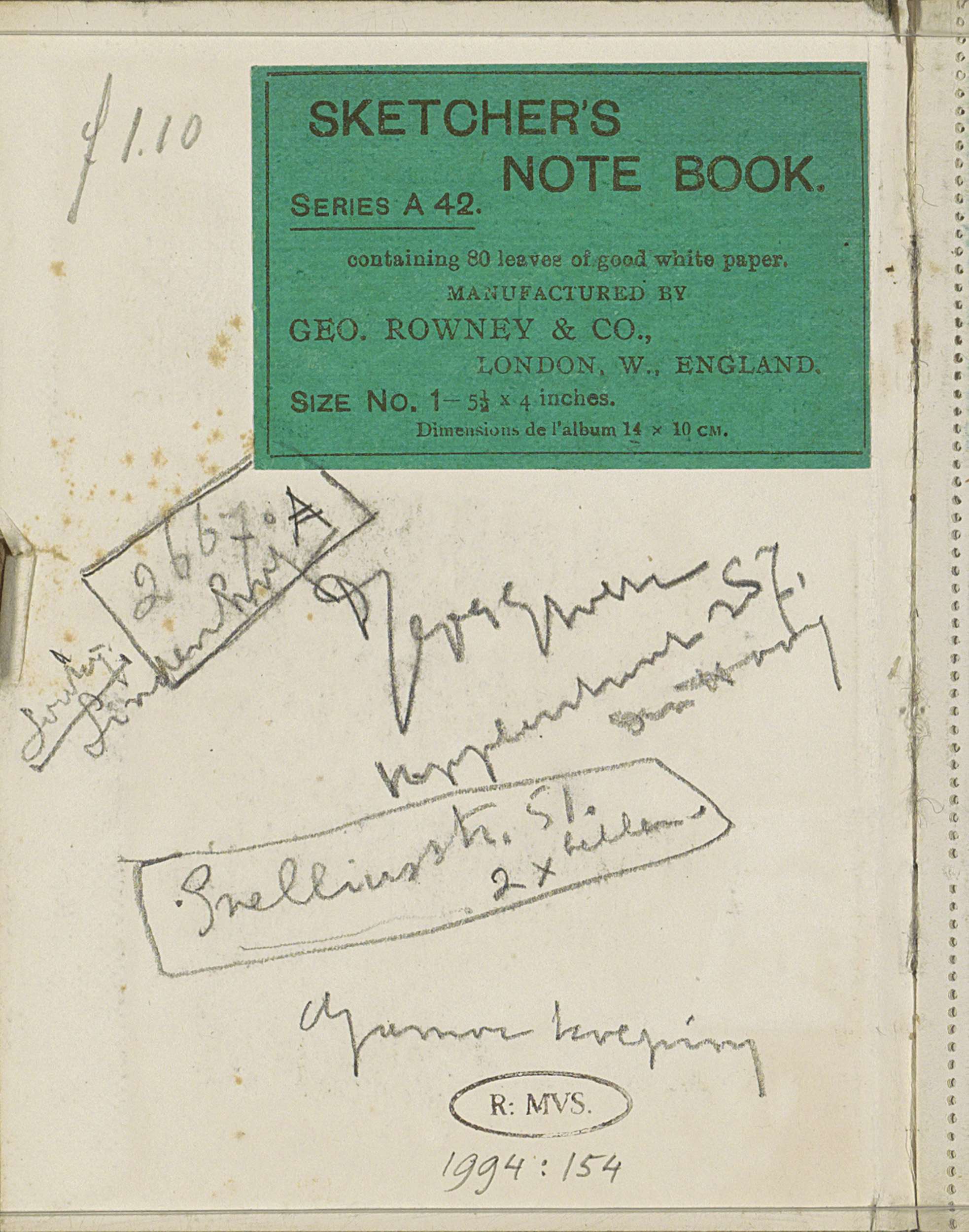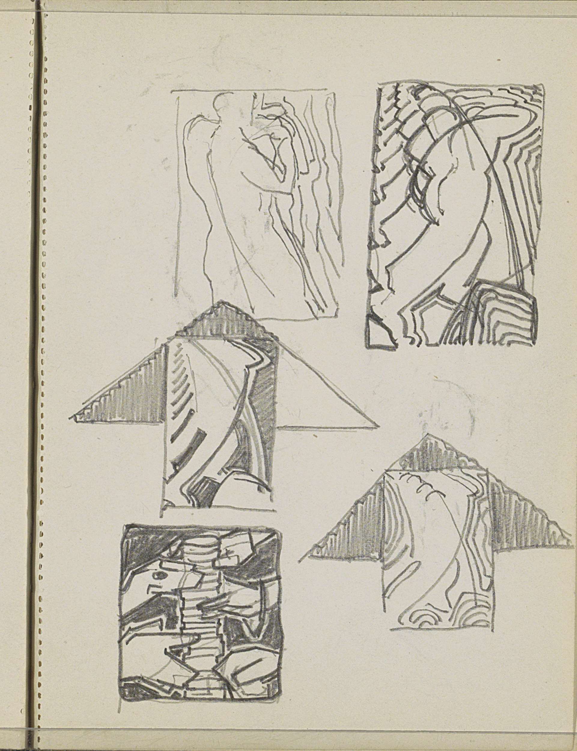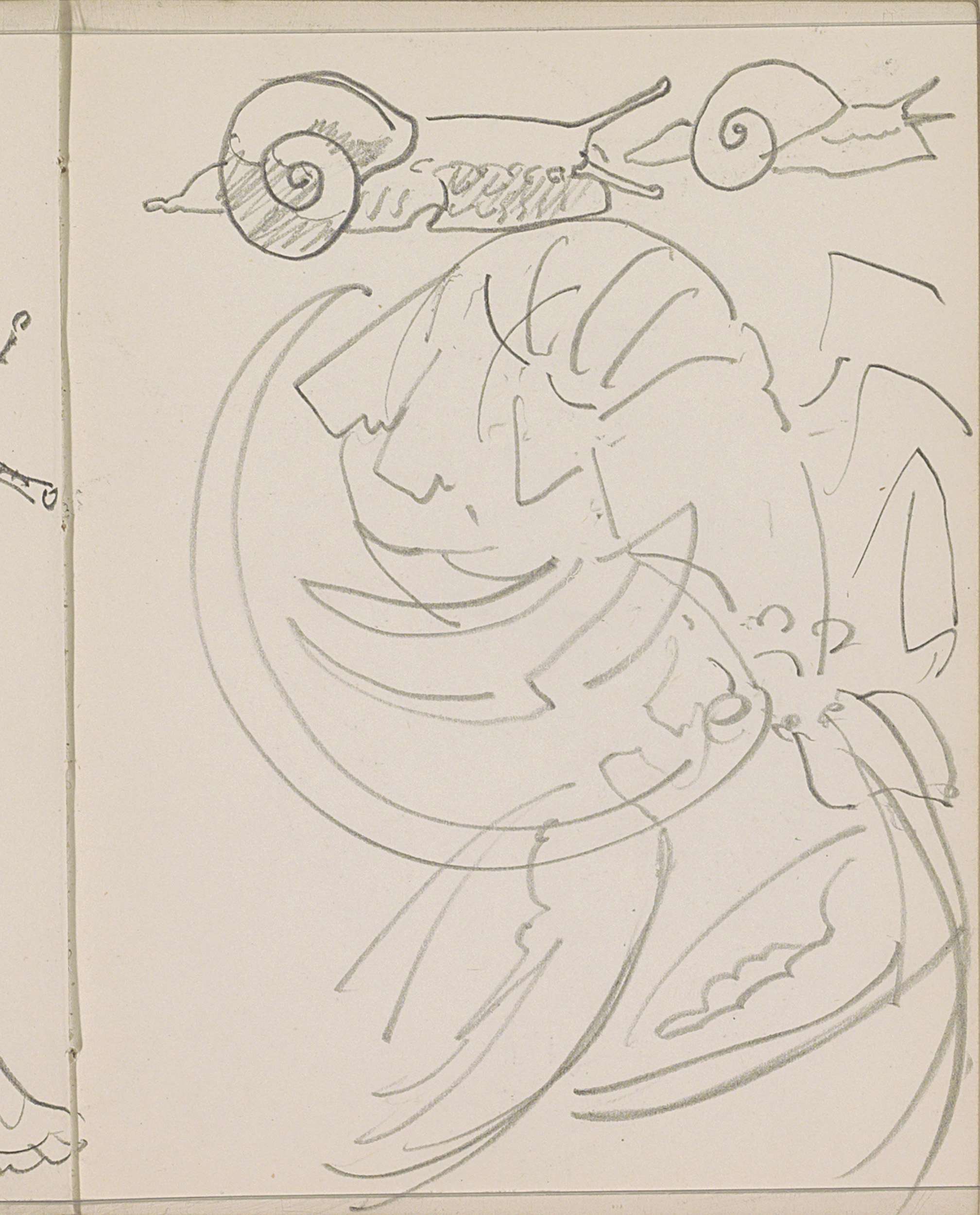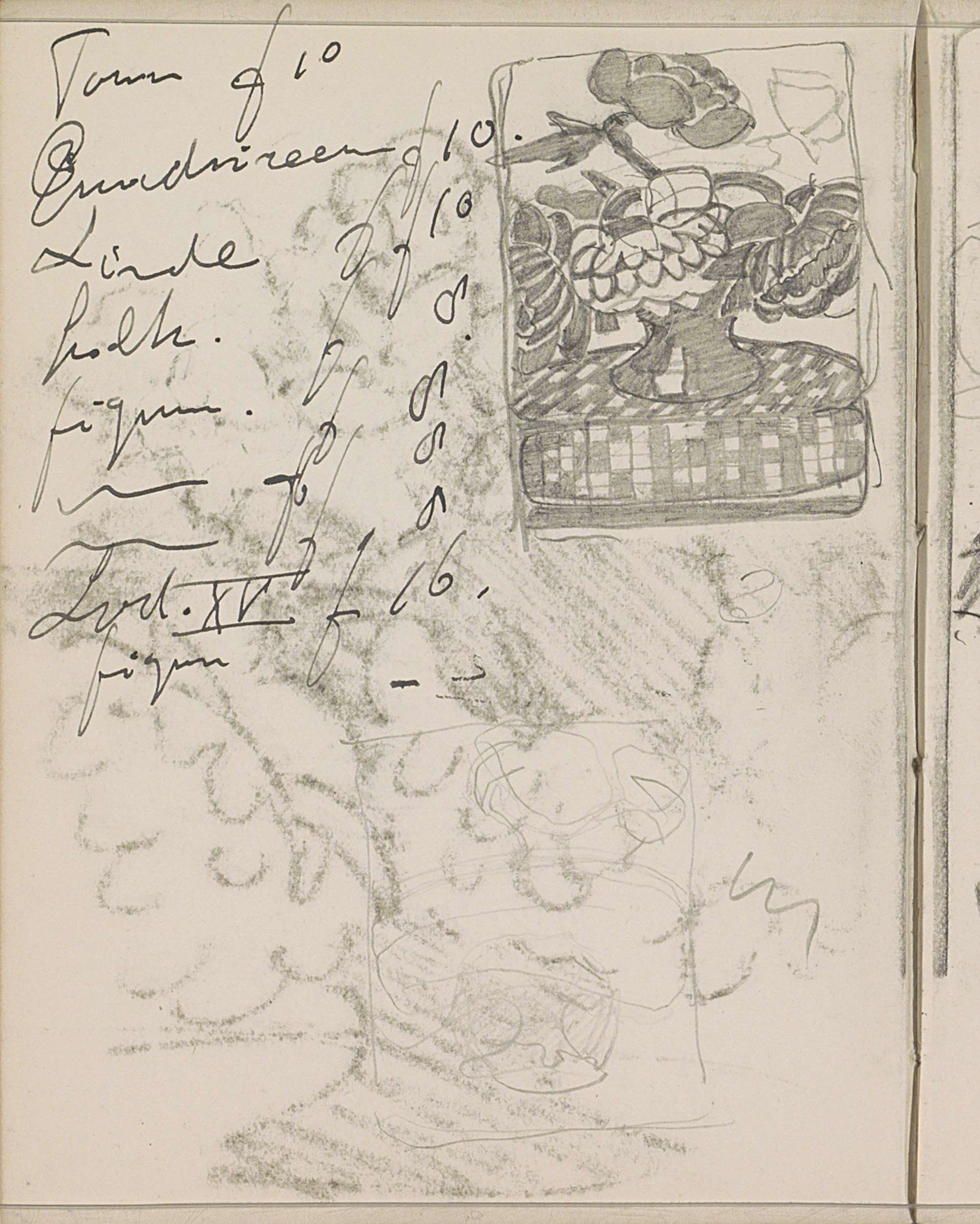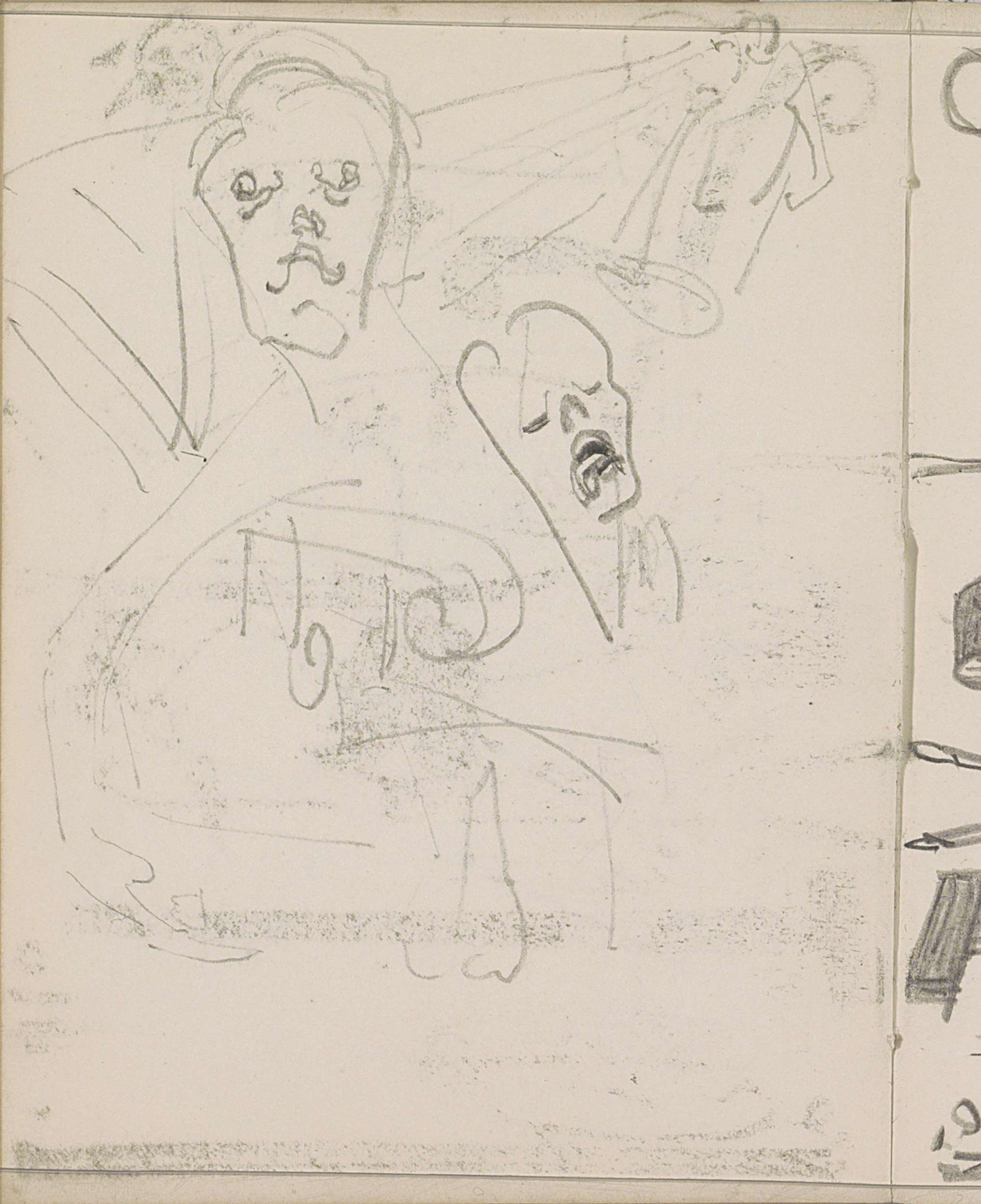 Studieblad, onder andere met figuren en dierenkoppen