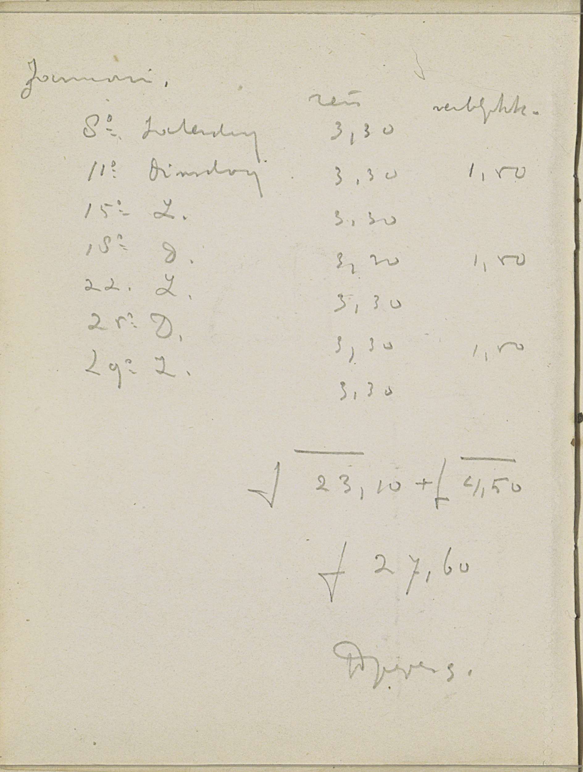 Lijst met reiskosten