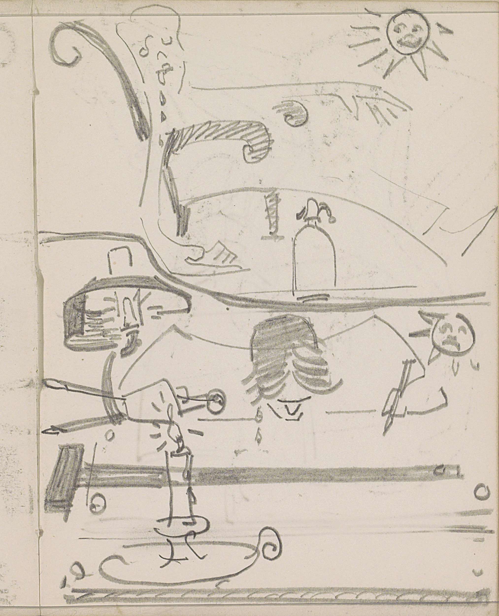 Compositie met een zon, kaars en fantasiefiguren