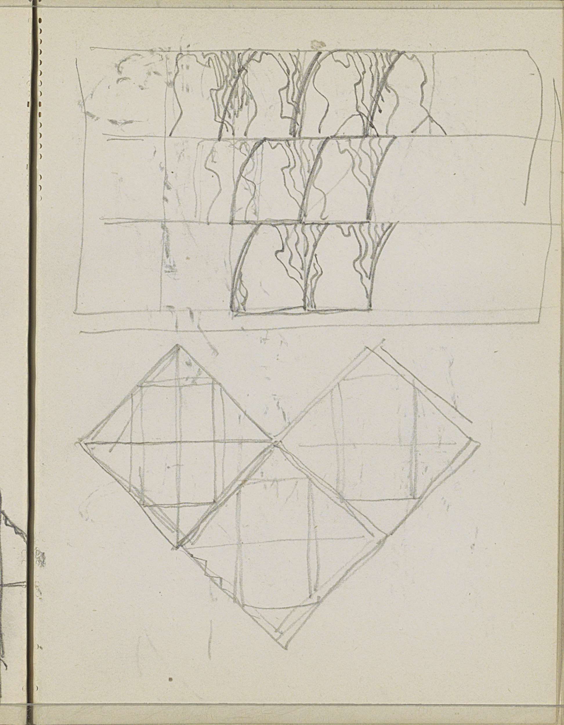 Plantmotief en een compositie met rechthoeken