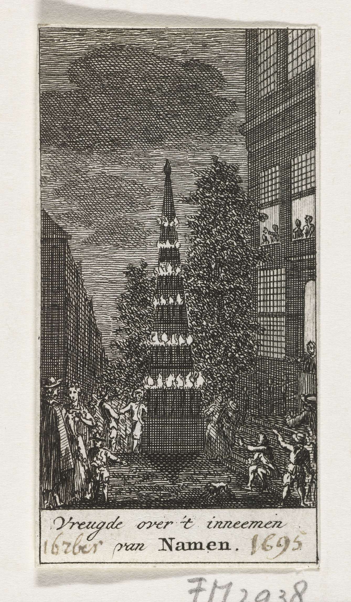Vreugdevuur bij de viering van de inname van Namen, ...