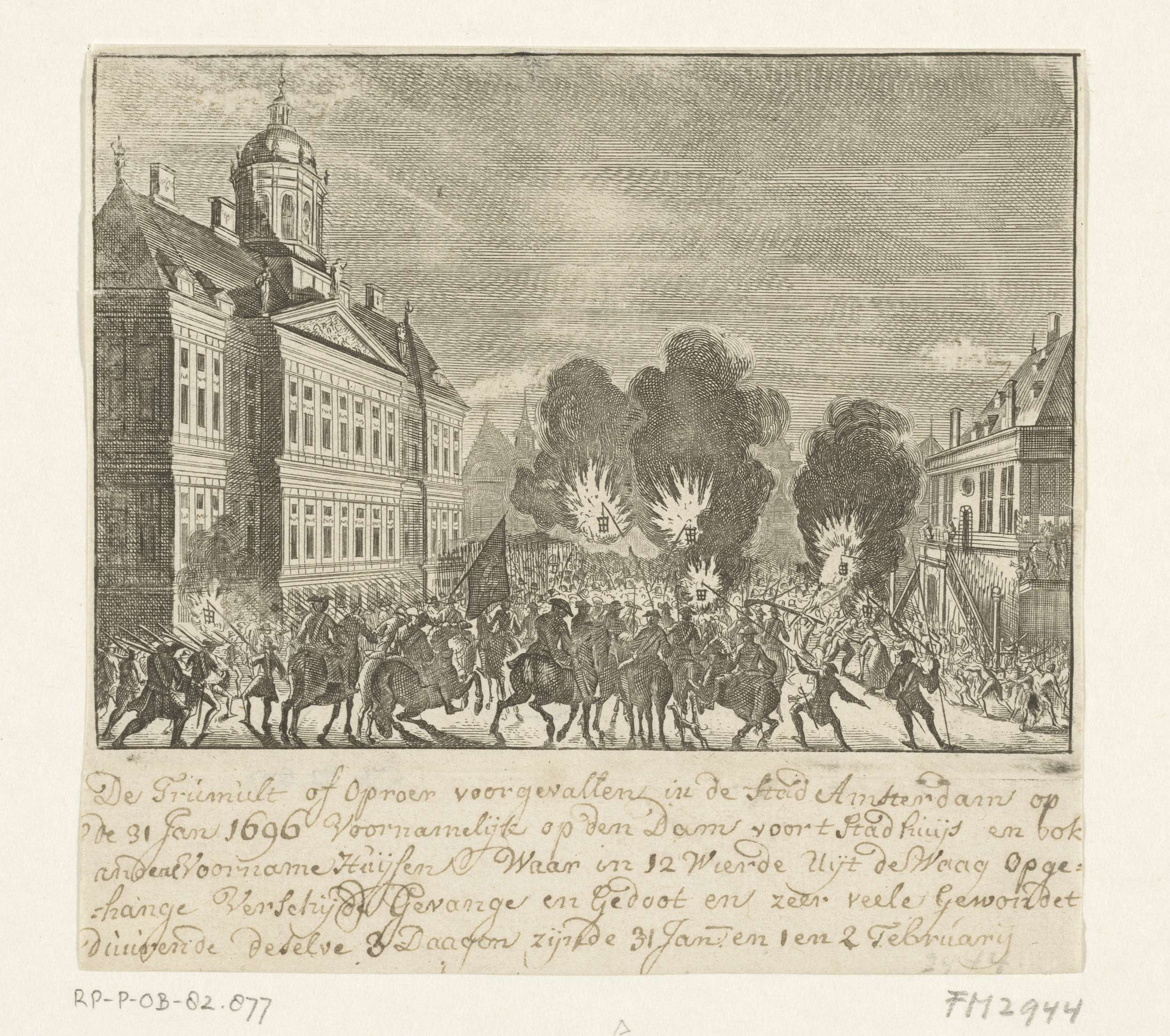 Oproer op de Dam tijdens het Aansprekersoproer, 1696