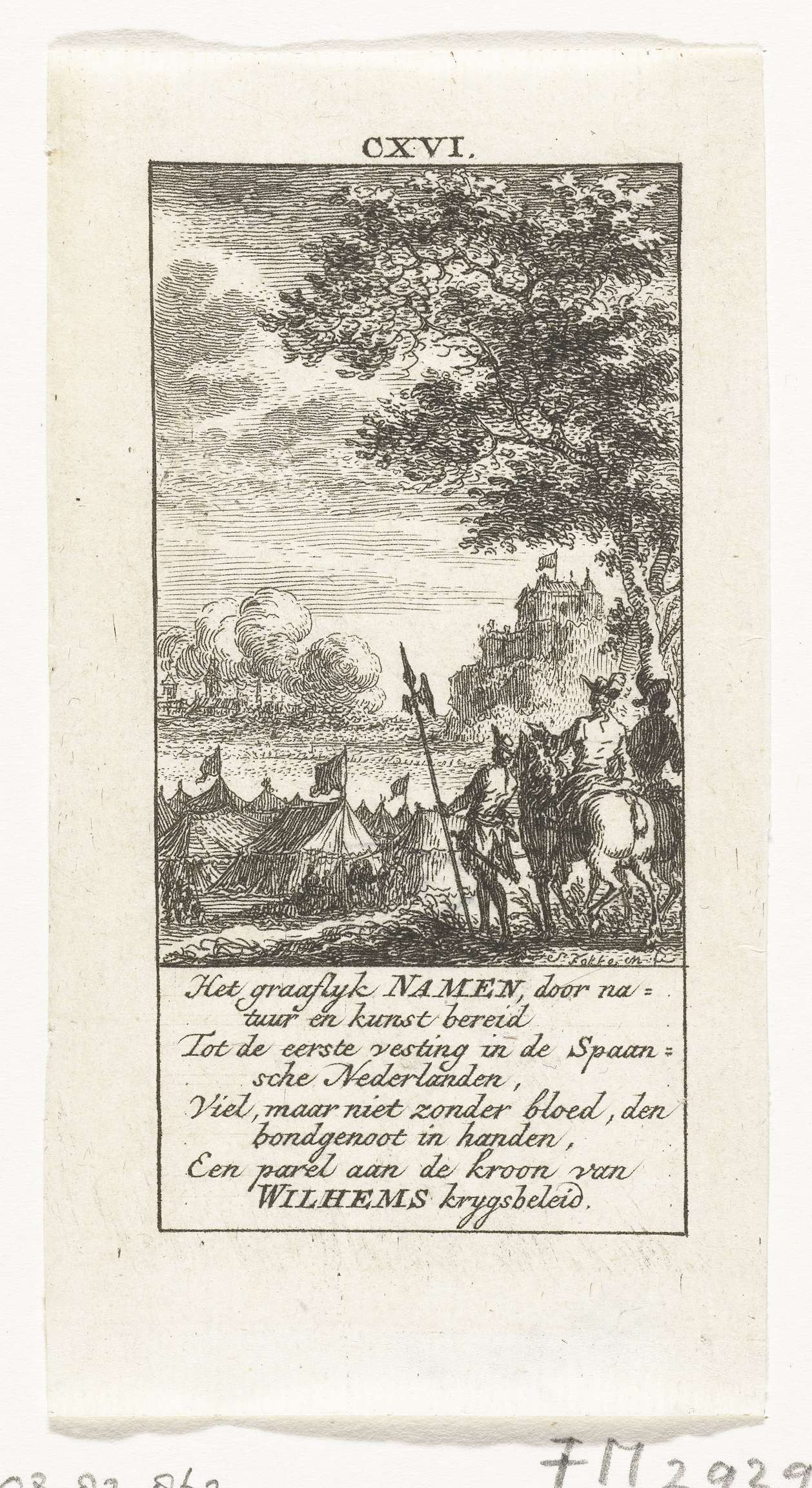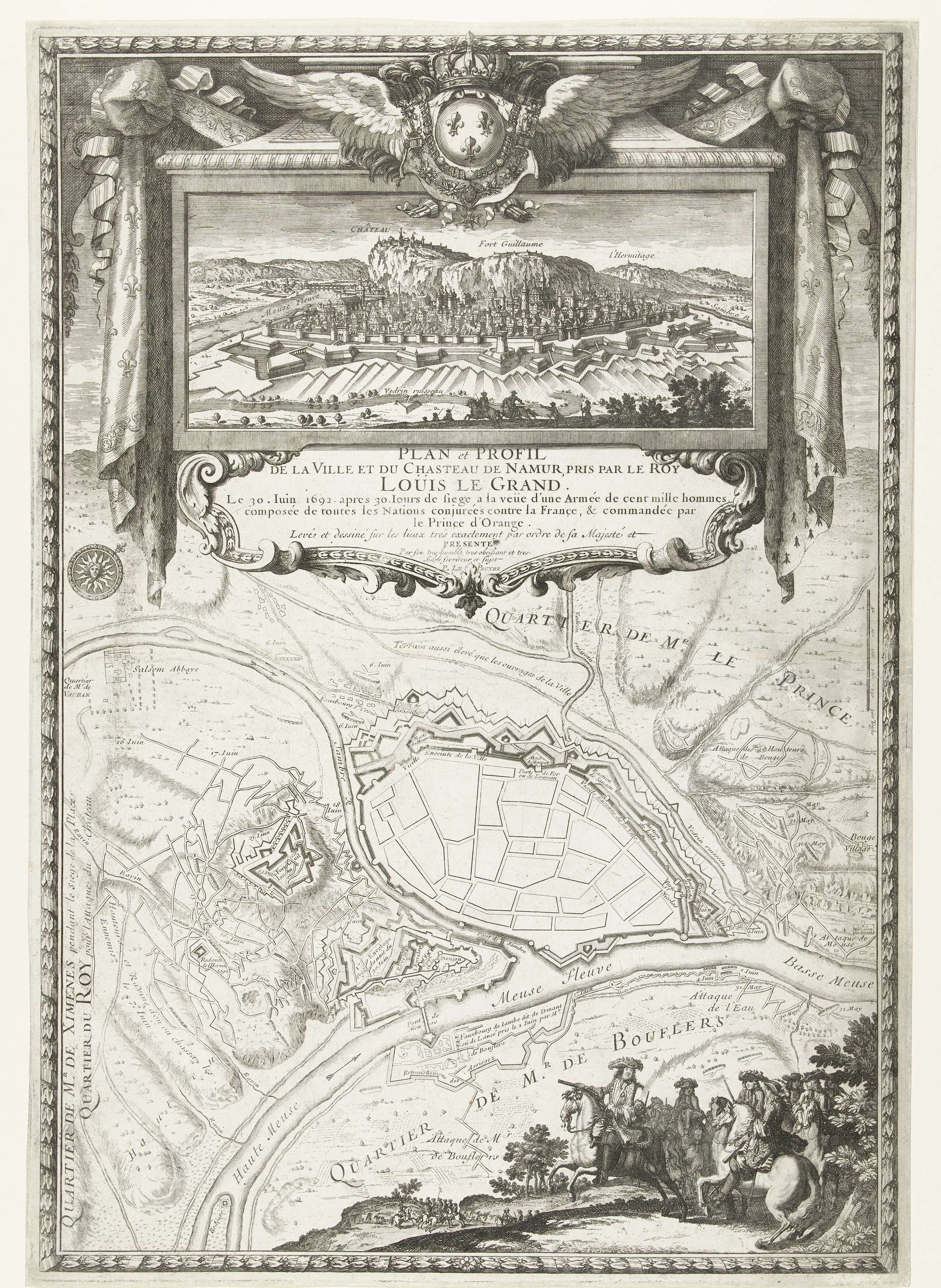 Kaart van de stad Namen met kasteel, belegerd door h...