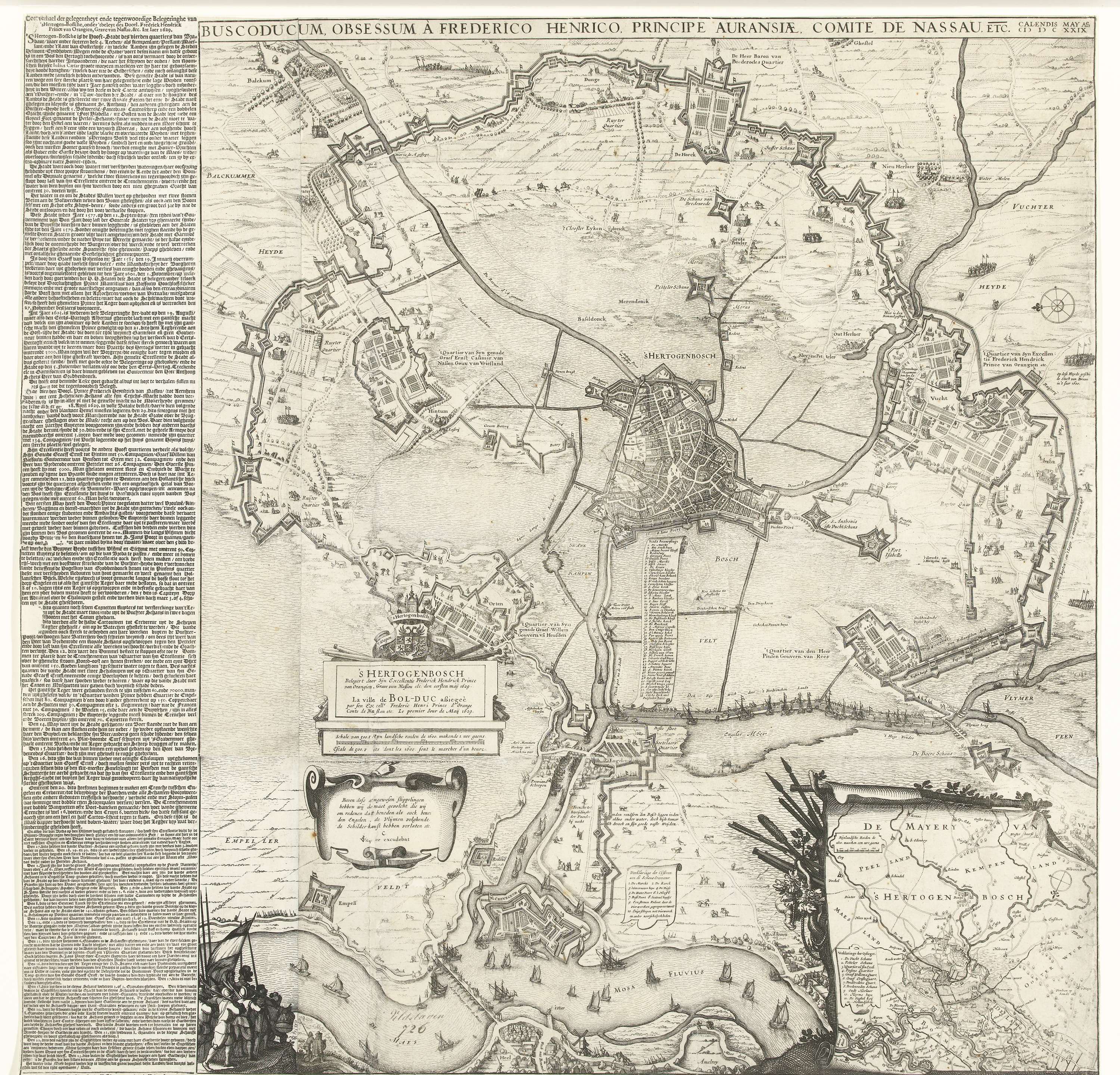 Kaart van de stad Namen met het kasteel, belegerd do...
