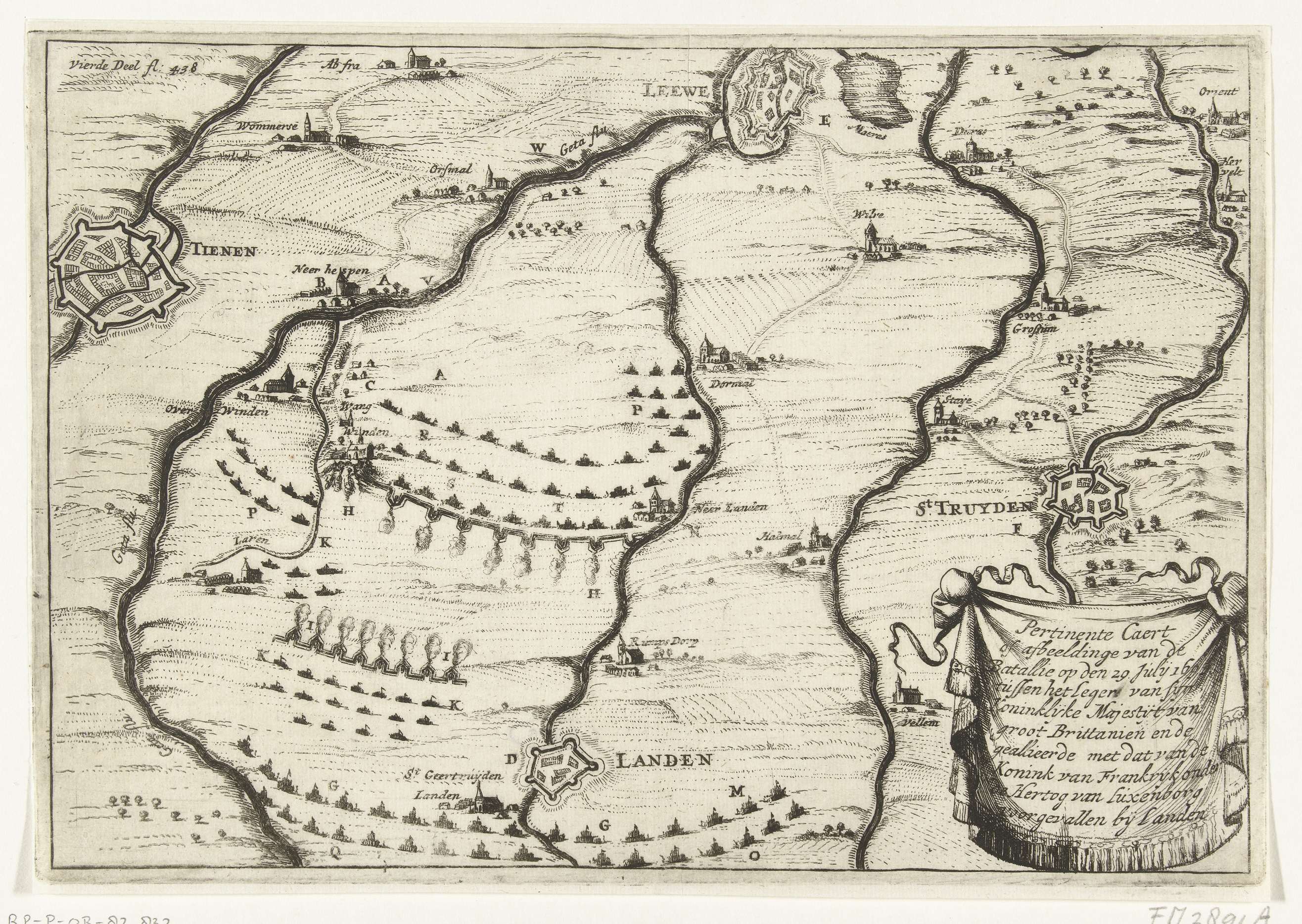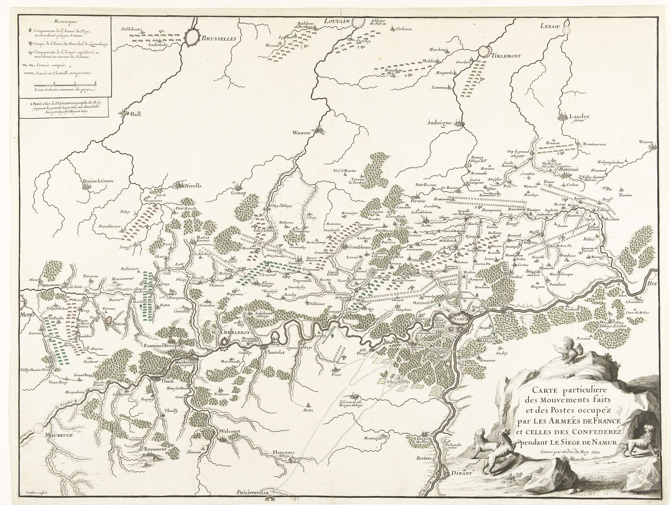 Kaart van het gebied rond de stad Namen, belegerd do...