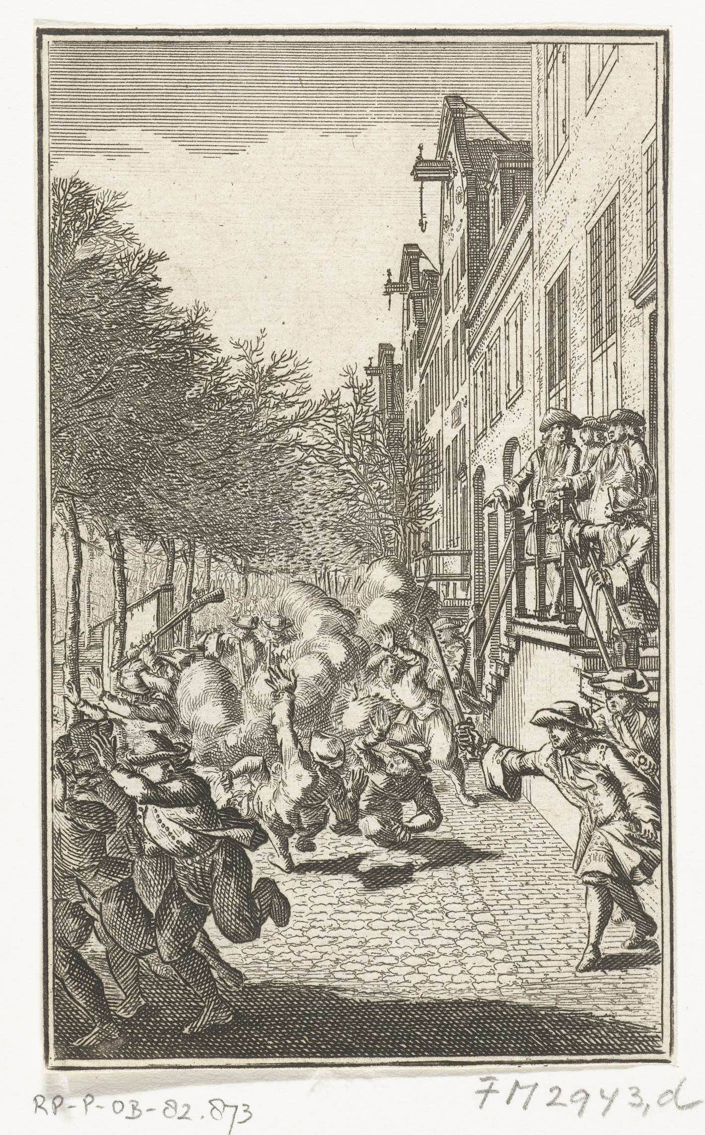 Schutterij verjaagt de oproerkraaiers tijdens het Aa...