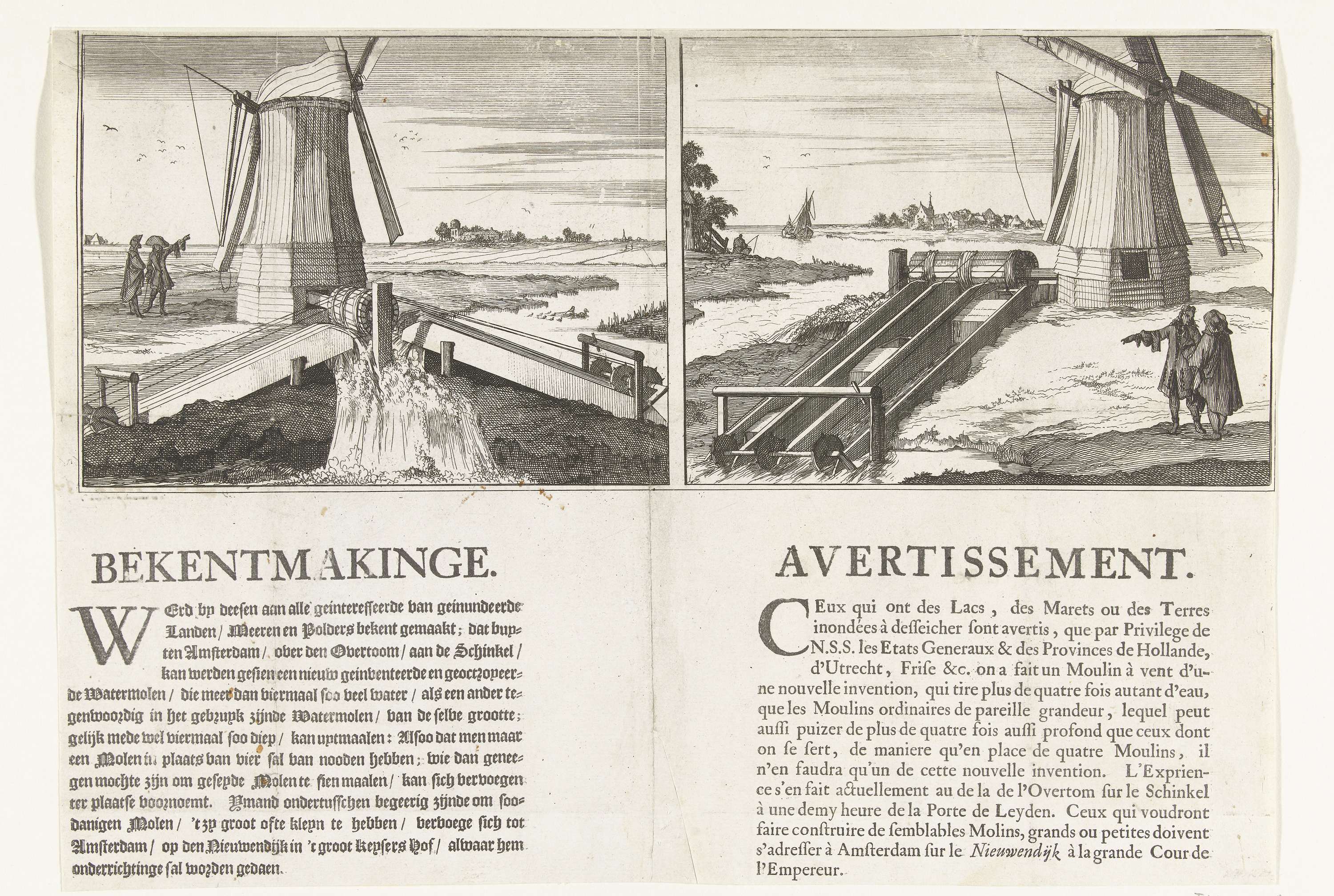 Bekendmaking van een nieuw soort watermolen, ca. 1691