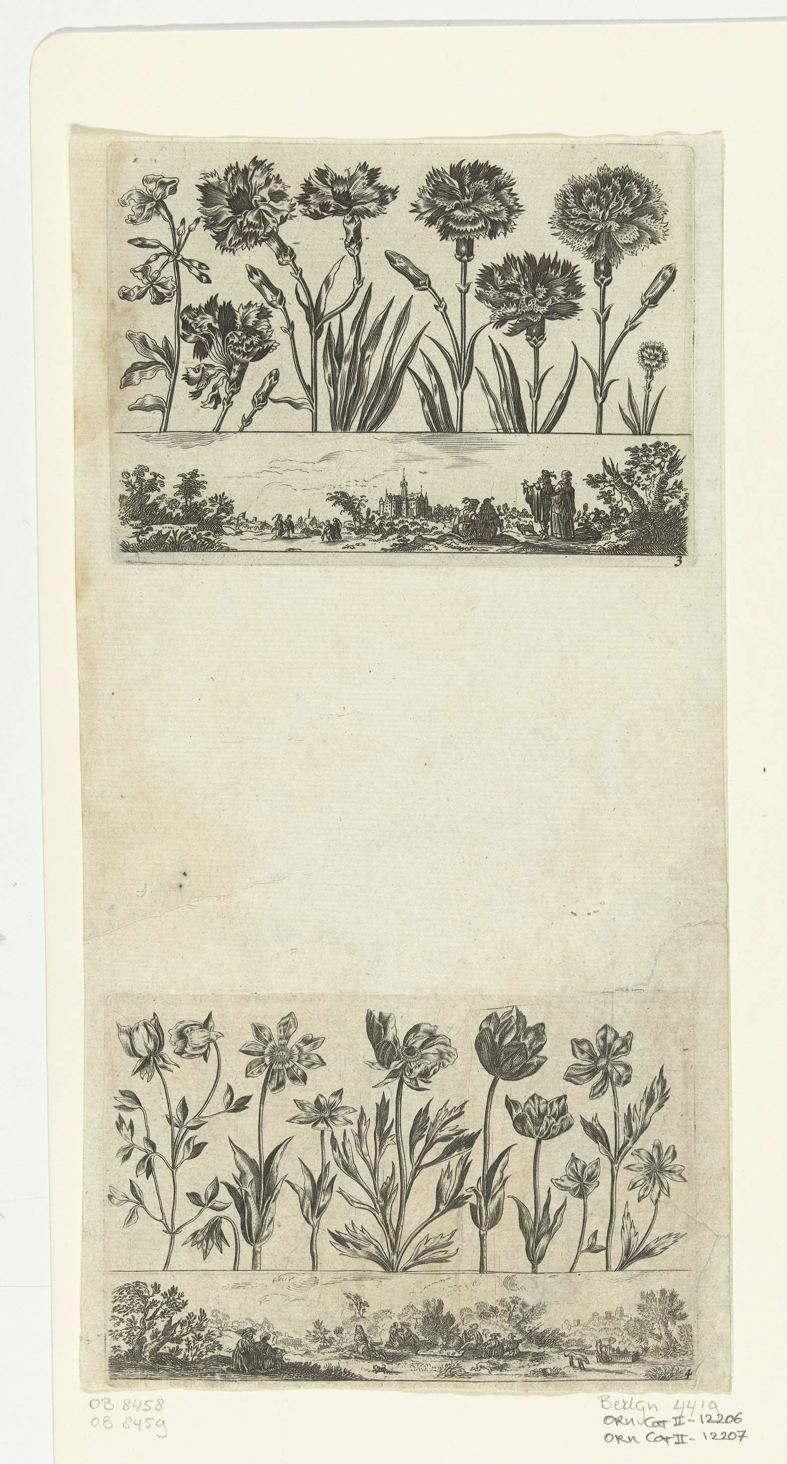 Bovenaan en onderaan een fries, daartussen twee klei...