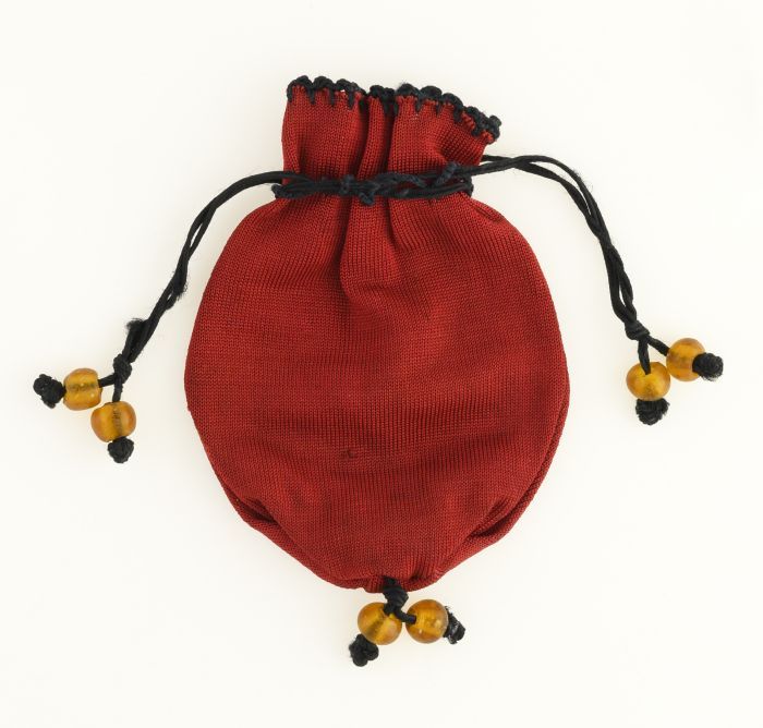 Kleine reticule van steenrode zijde tricot met zwart...