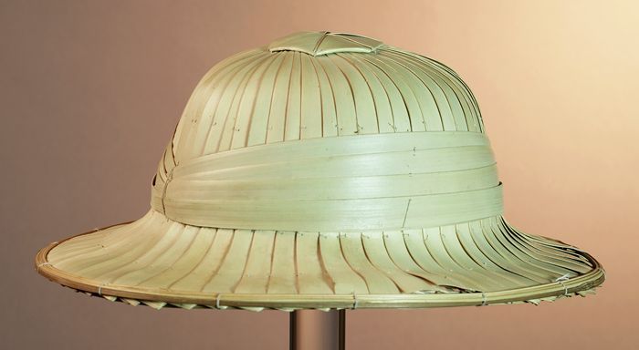 Tropenhelm, basis van gevlochten vezel waarover stra...