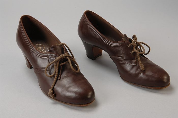 Bruine damesschoenen met vetersluiting en cubahak, r...