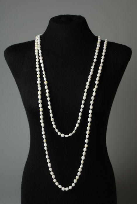 Kralenketting, kralen van schoolkrijt, geregen aan k...