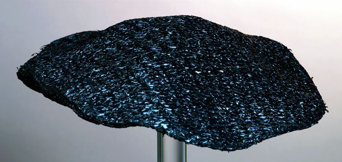 Baret, slap model, geheel van glanzend zwart raffia
