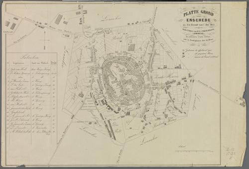 kaart: de stad Enschede en het wigbold na de brand v...