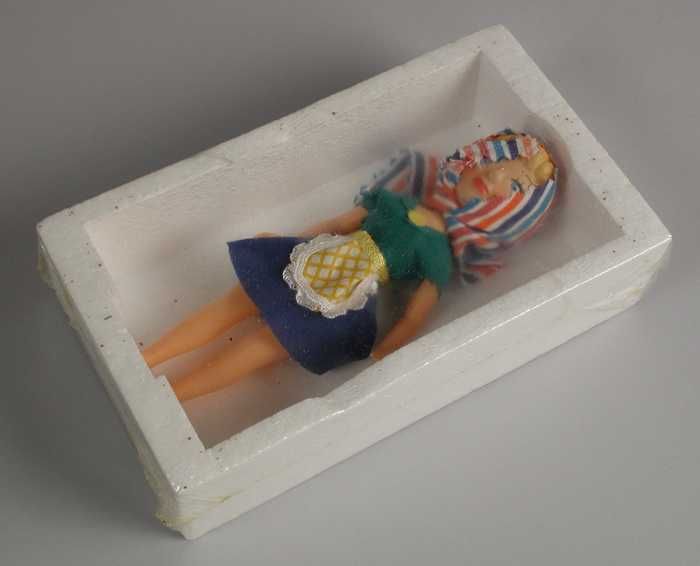 Kleine pop van roze gekleurd plastic, reclame-uitgav...