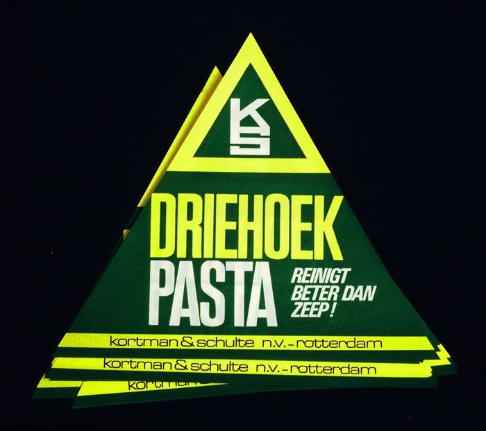 Partij etiketten driehoekzeep, opdruk in geel, groen...