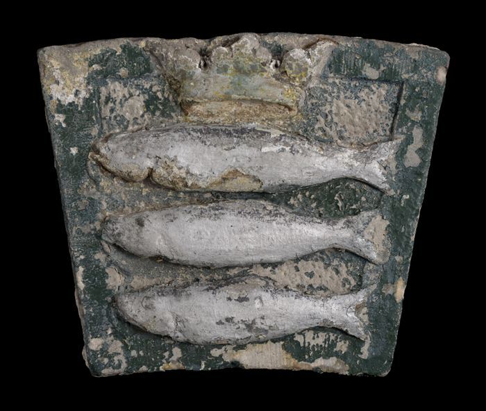 Gevelsteen met drie gekroonde haringen