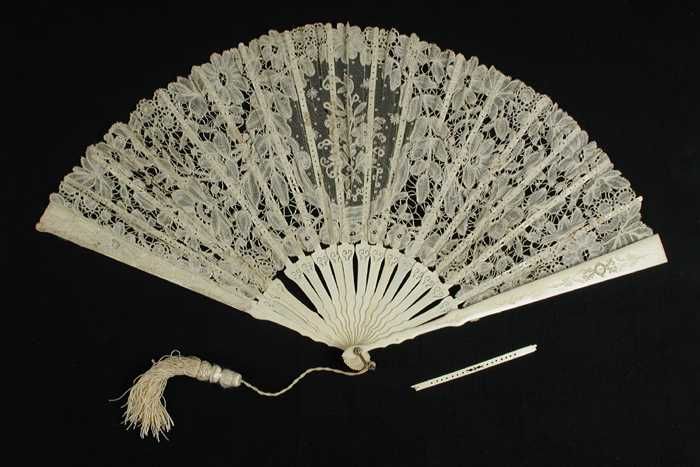 Vouwwaaier met montuur van gesneden been en waaierbl...