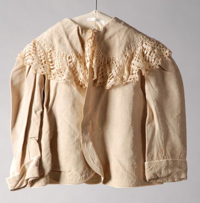 Kinderjas van champagnekleurig zijde, heuplang geren...
