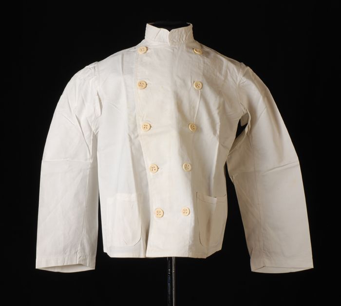 Kinderwerkjas van wit katoen met steekzakken en dubb...