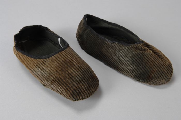 Groen / bruine ribfluwelen kindersloffen, opening af...