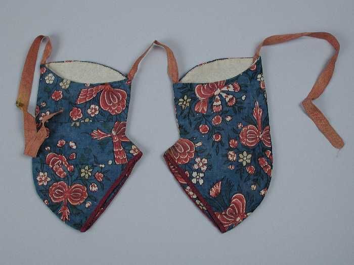 Paar ondermouwen van sits, blauw fond met donkerrood...