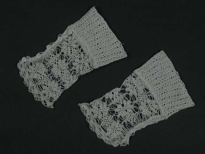 Paar mitaines van fijn wit katoen, gebreid in reliëf...