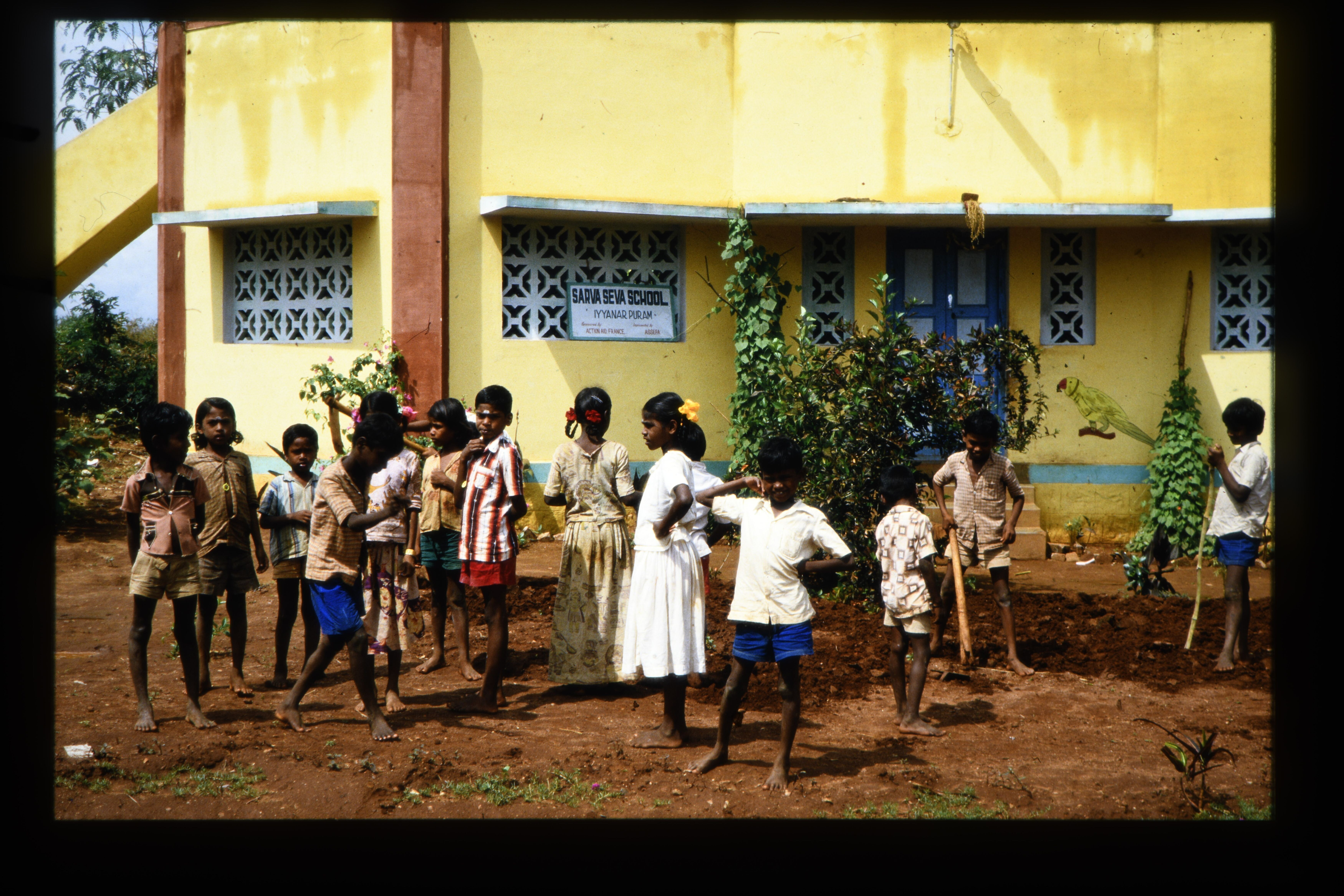 'Poserende kinderen bij hun lagere school Eiland Tanna'
