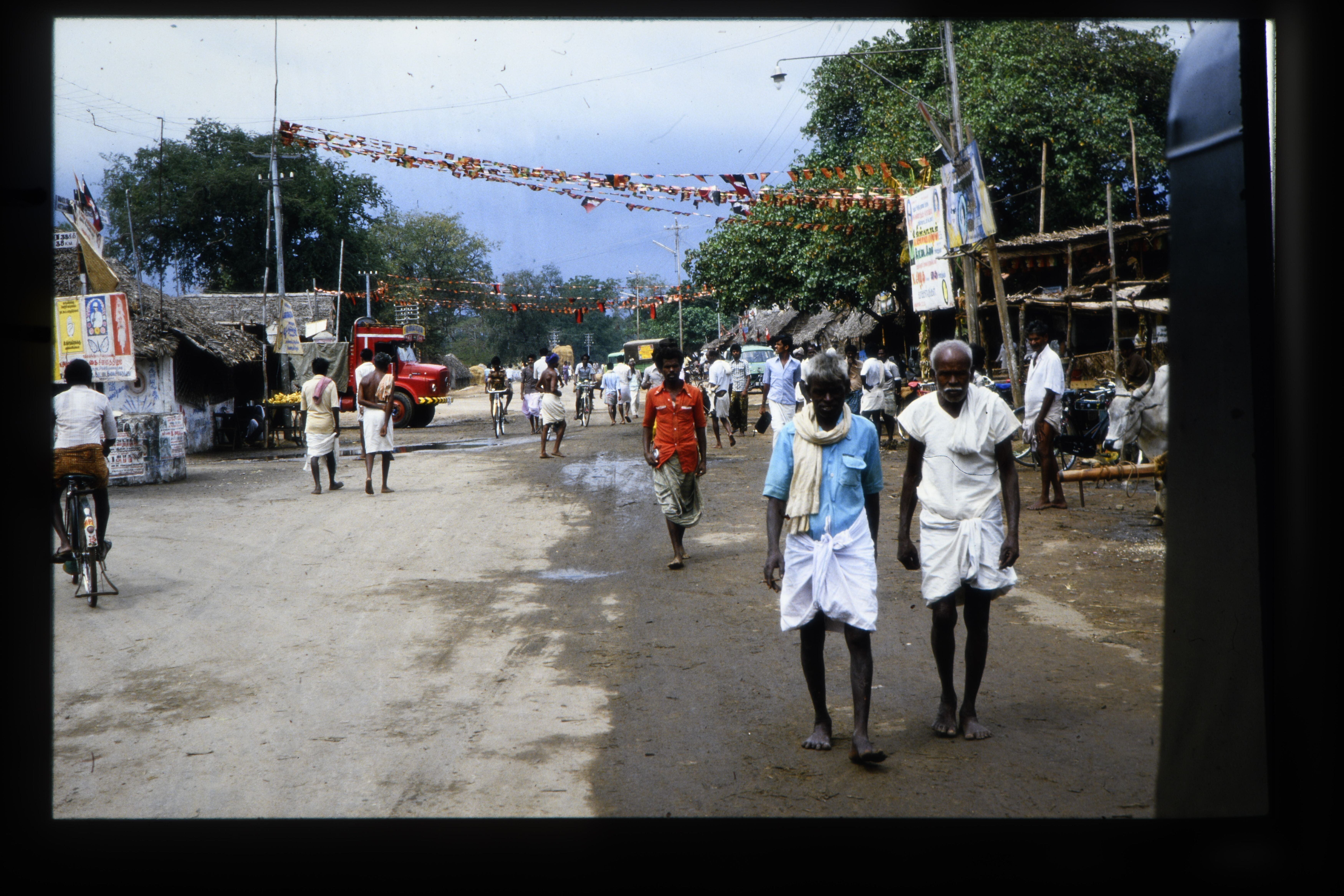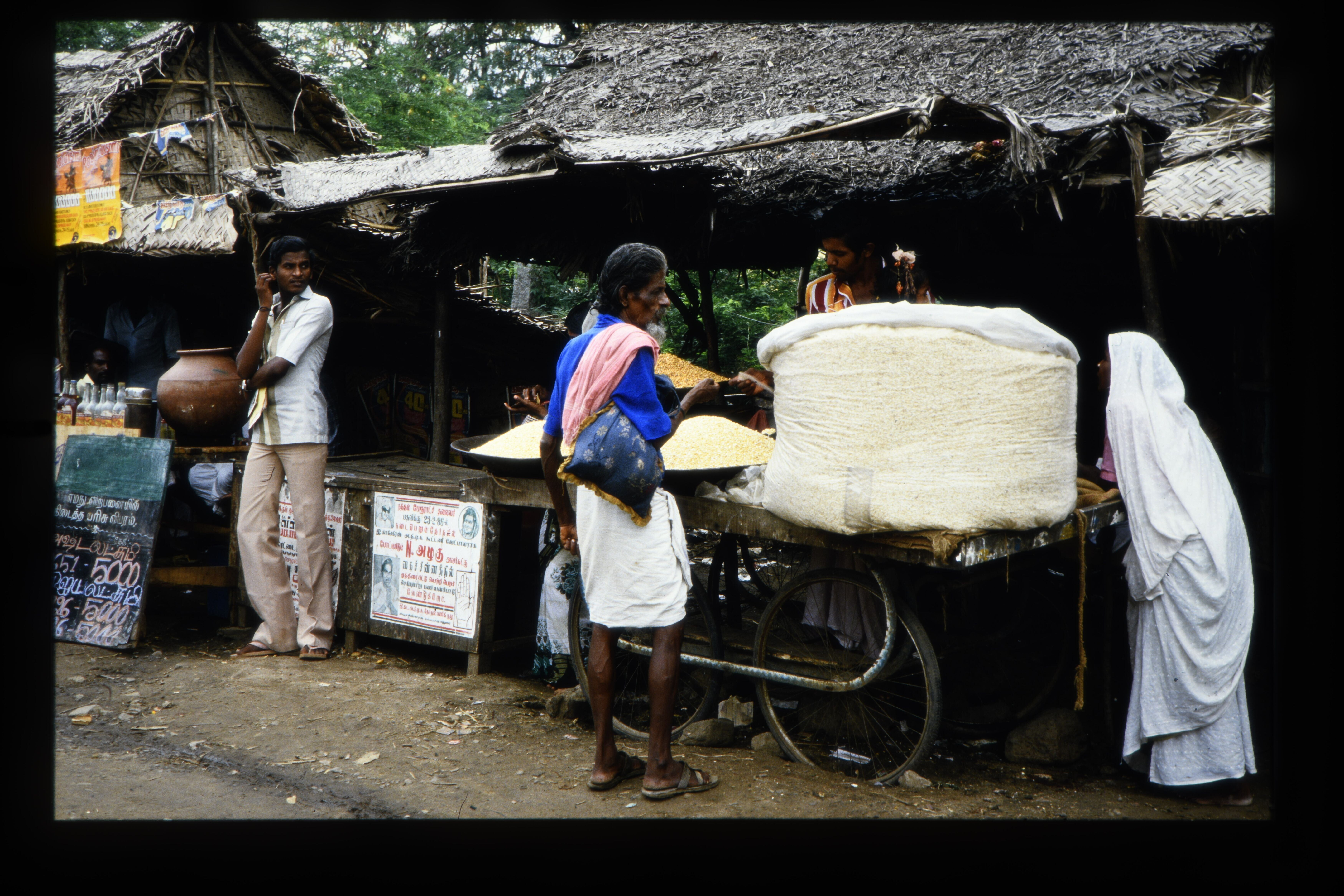 'Stalletje met plastic bloemen bij een tempel Madurai'