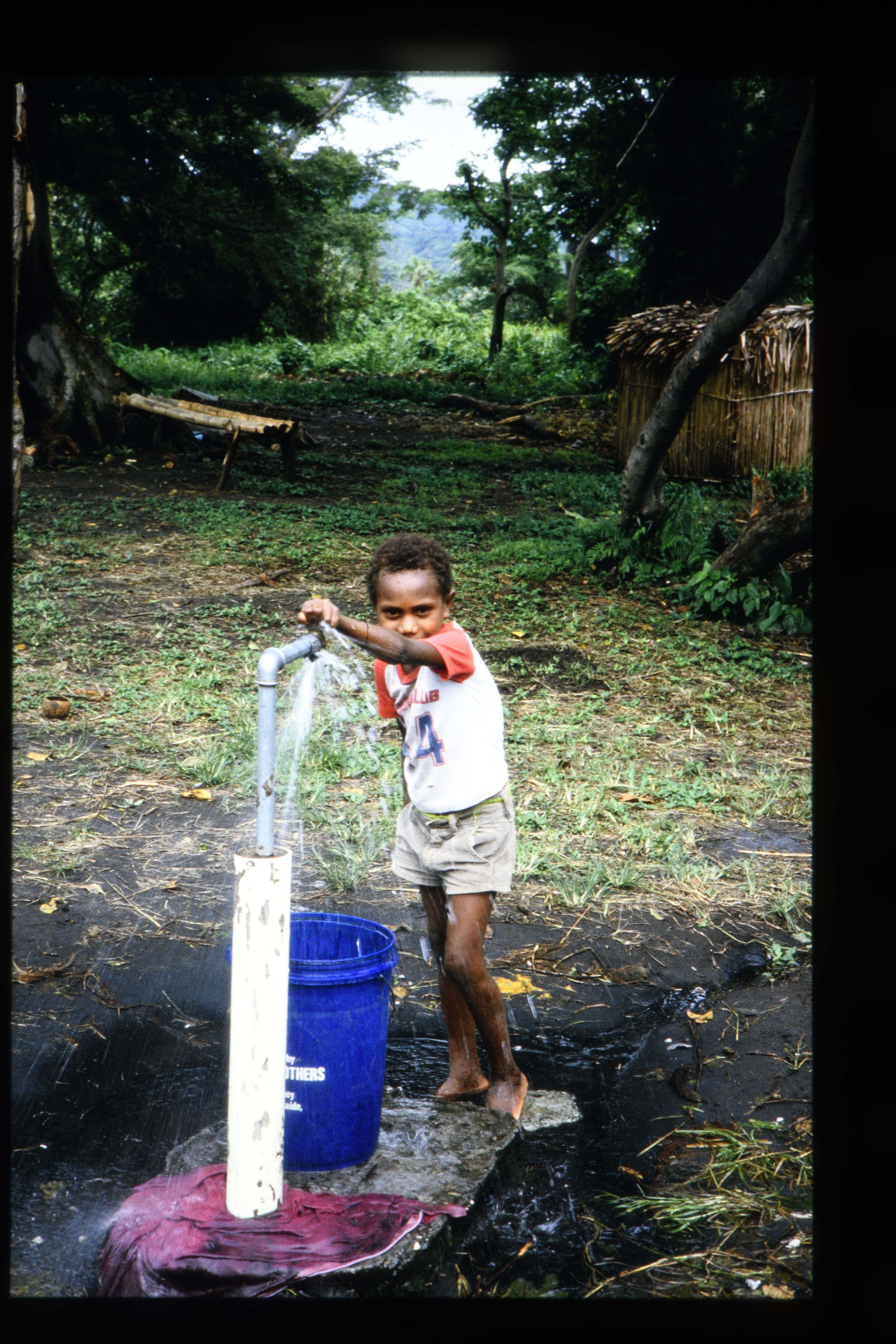 'Jongen bij een zelfgsemaakte houten boot Eiland Tanna'