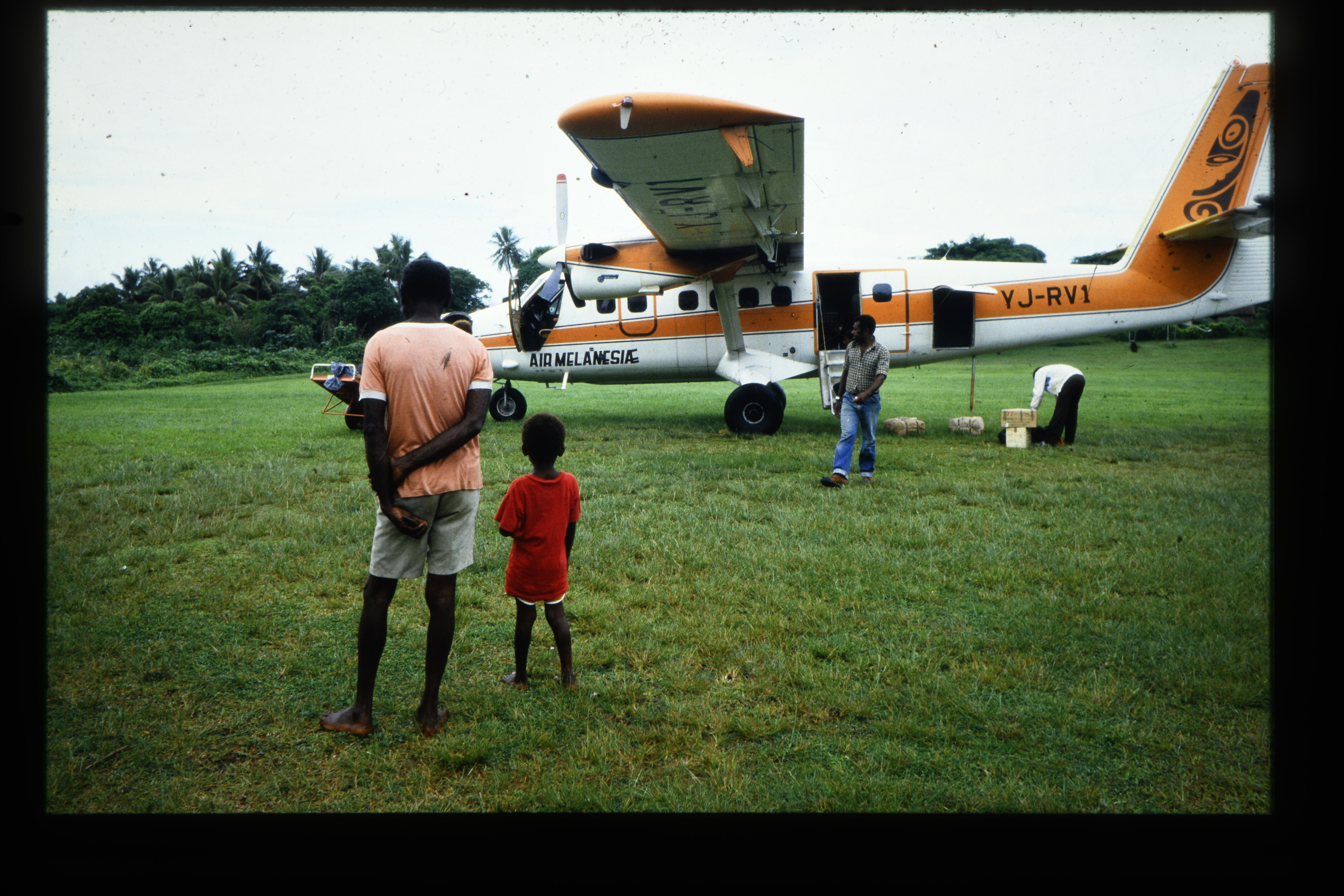 'Vliegveld met vliegtuig van Air Melanesia Eiland Ta...