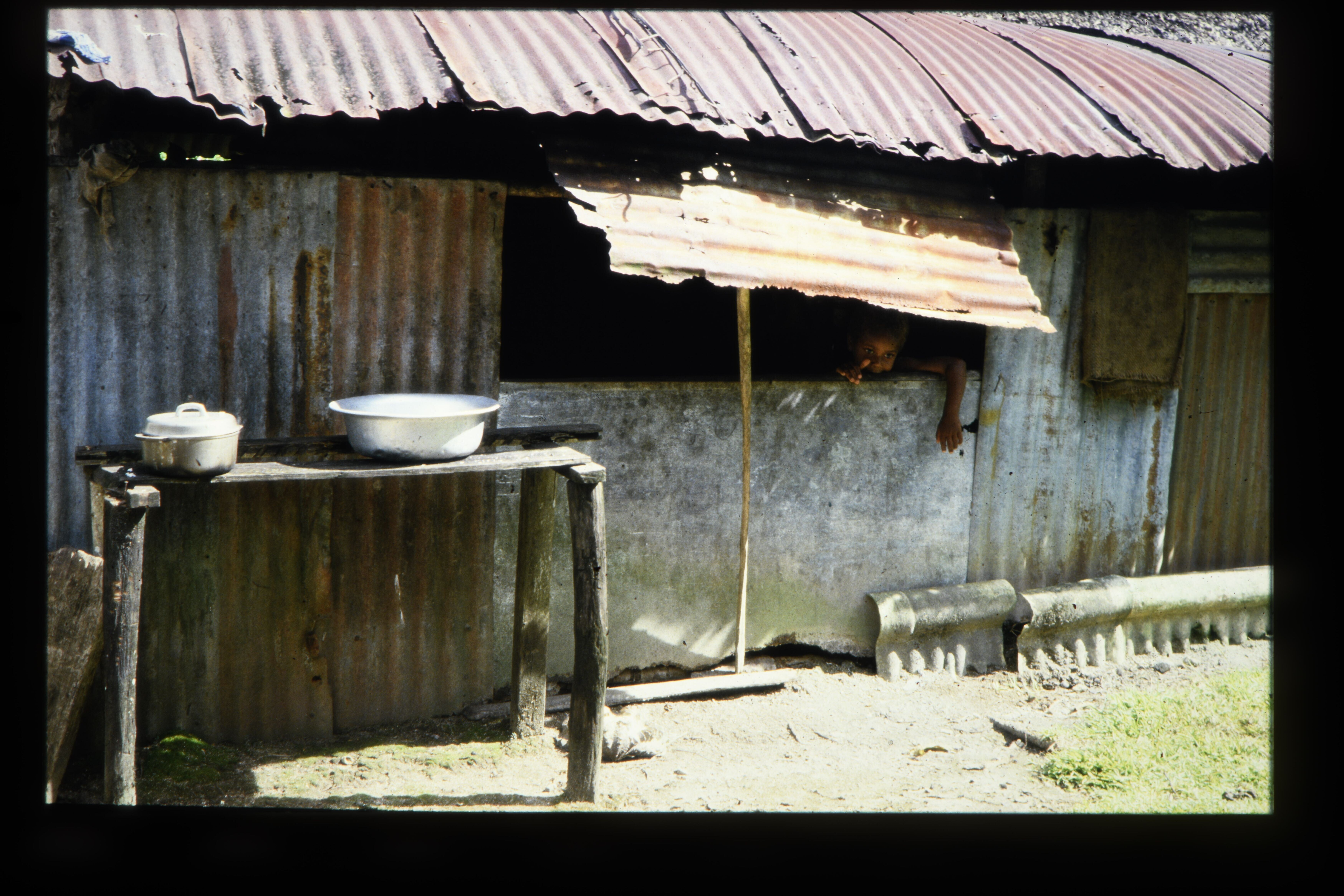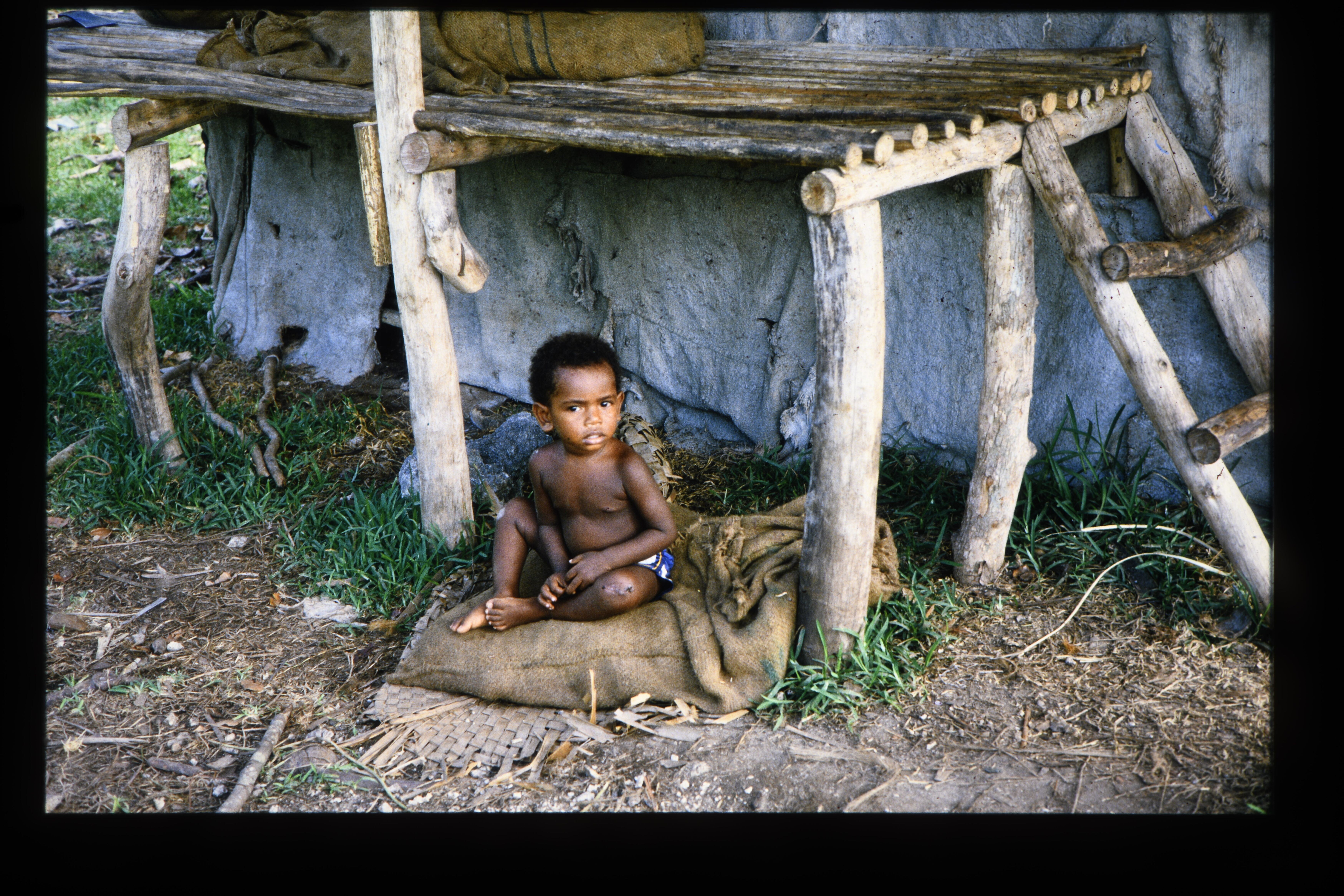 'Jongetje bij een copra-drooghuis Eiland Espiritu Sa...