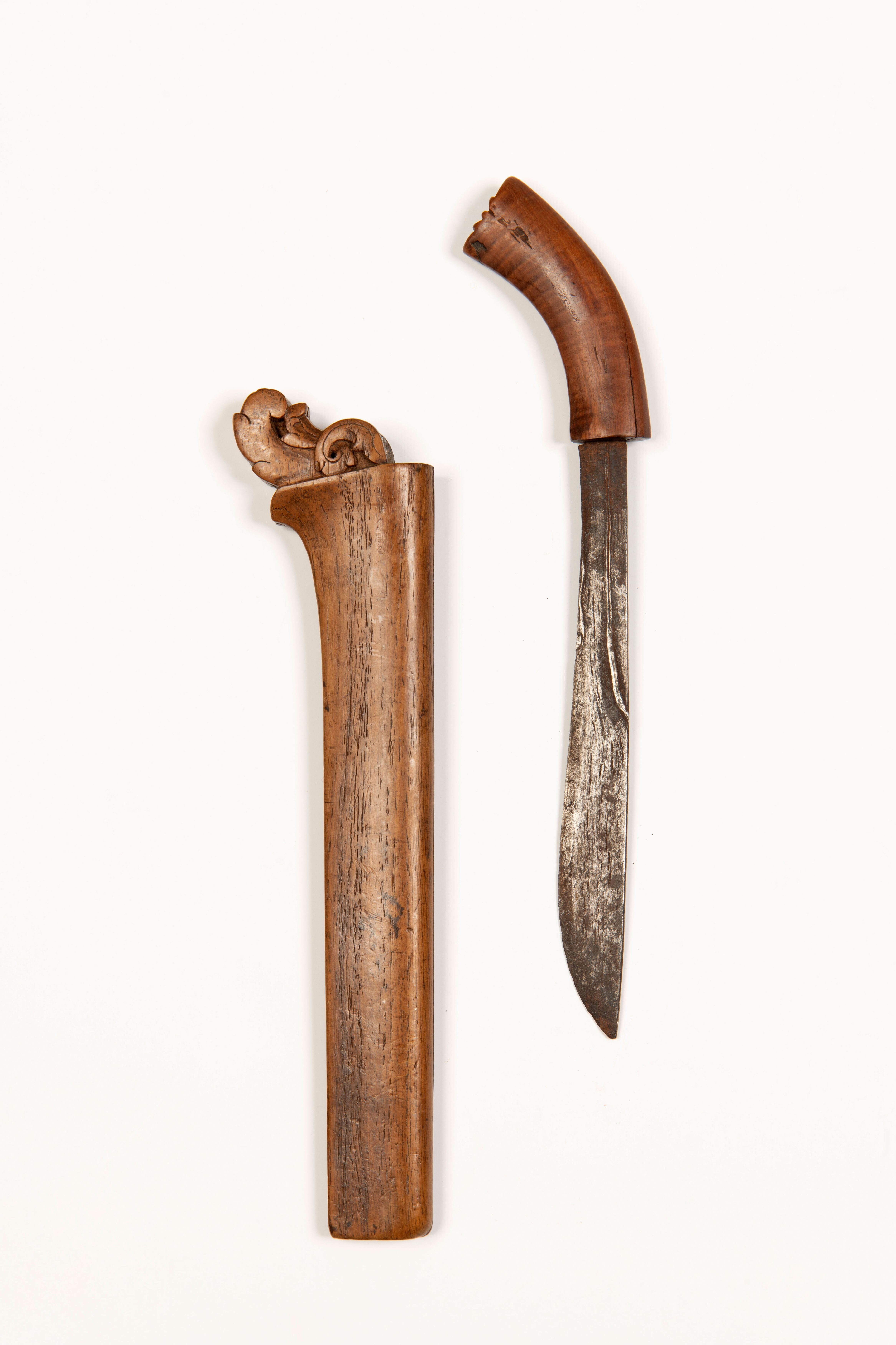 Dolkmes met houten greep en bijbehorende houten schede