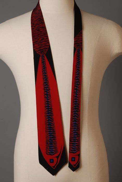 Stropdas, zelfbinder, van zijde, bedrukt met twee vi...