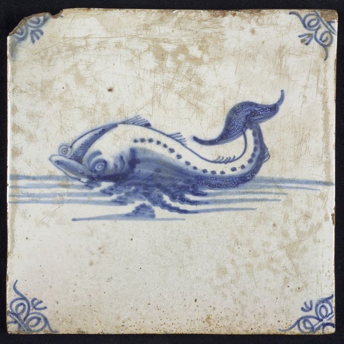 Dierentegel, vis of dolfijn, hoekmotief ossenkop