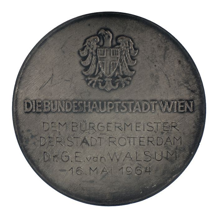 Penning met inscriptie en naam burgemeester Van Wals...