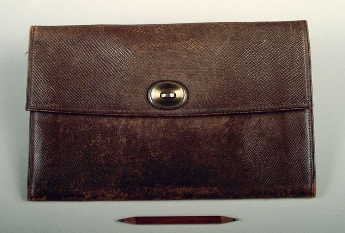 Bruine leren dienstboden portefeuille met tweepuntig...