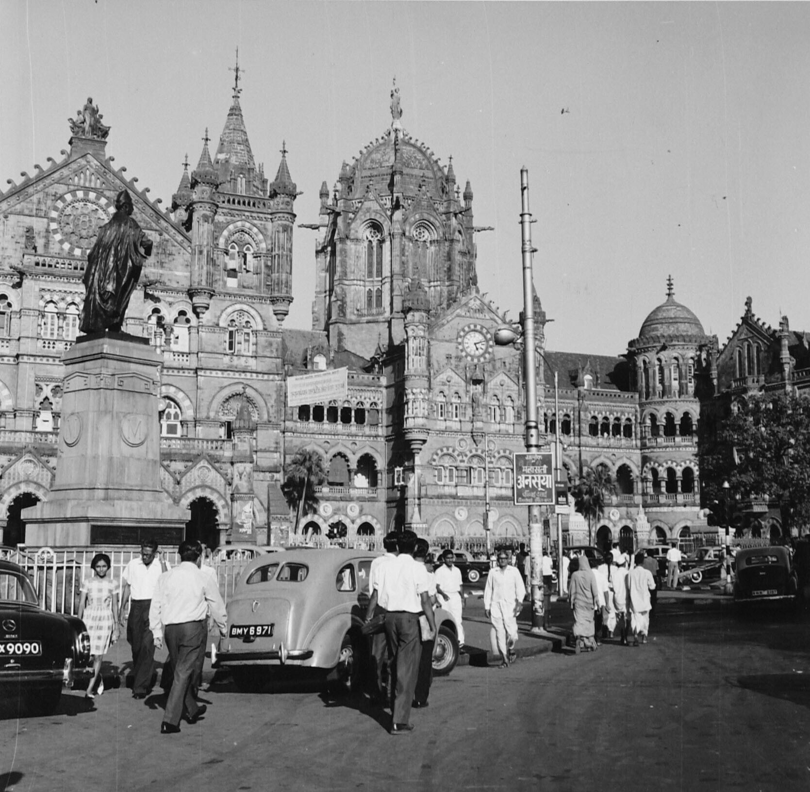 Straatbeeld in Hyderabad met links op de voorgrond e...