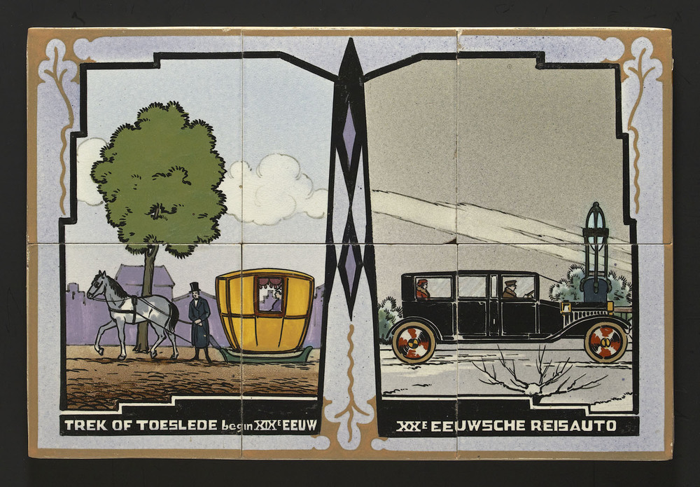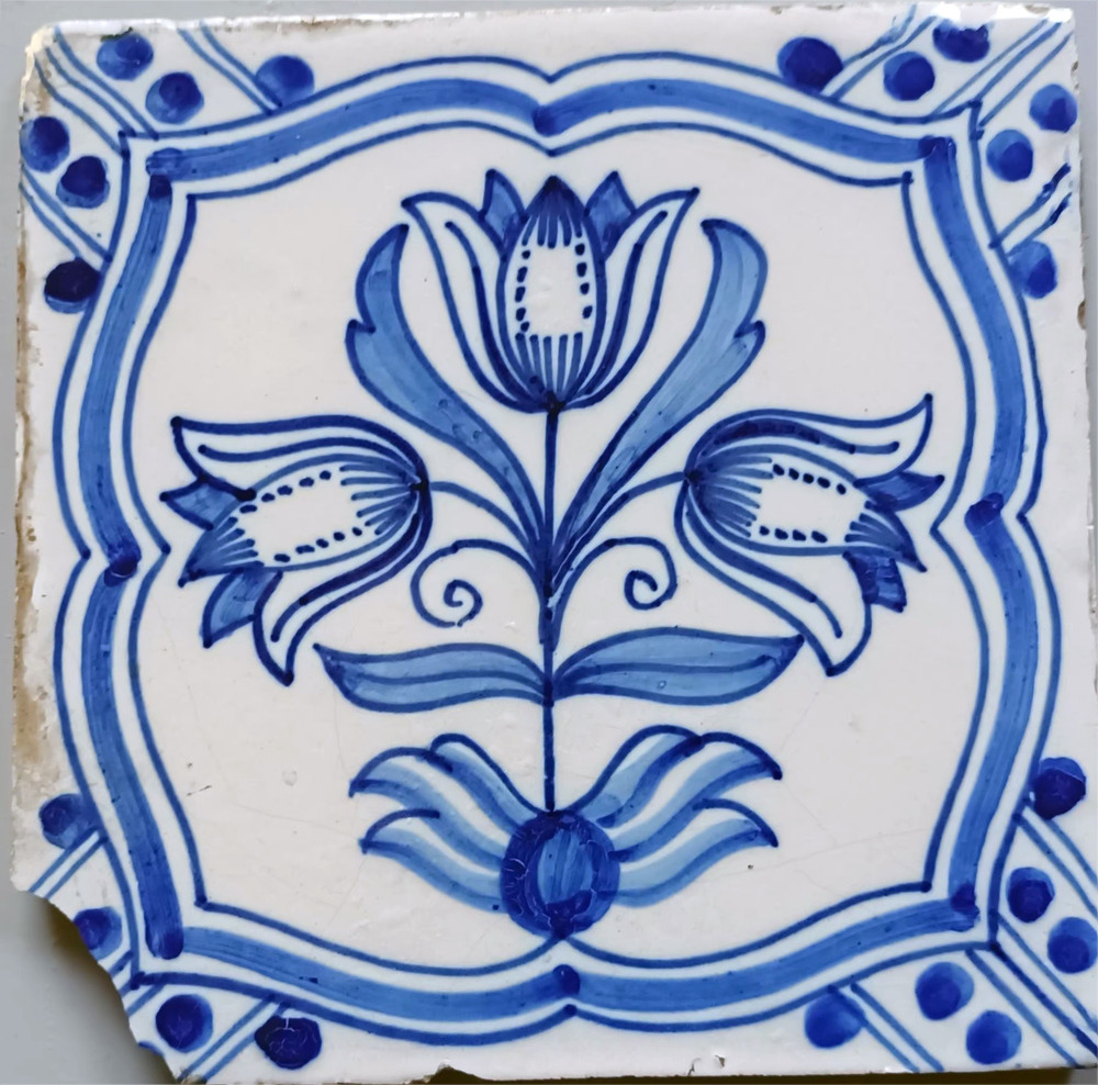 tegel van aardewerk in transfertechniek, voorstellen...