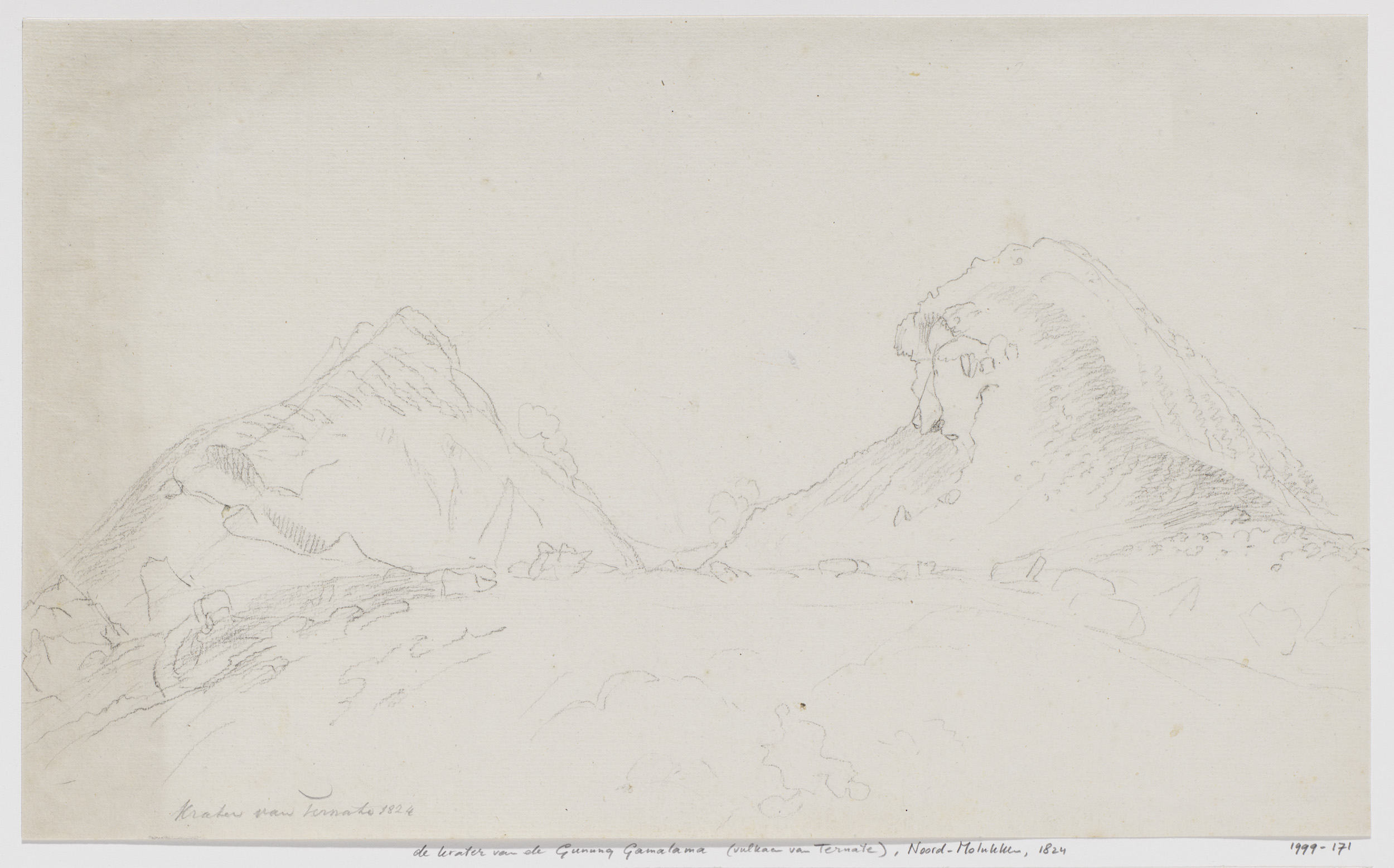 Gezicht op de Gunung Kiemtabu, Noord-Molukken