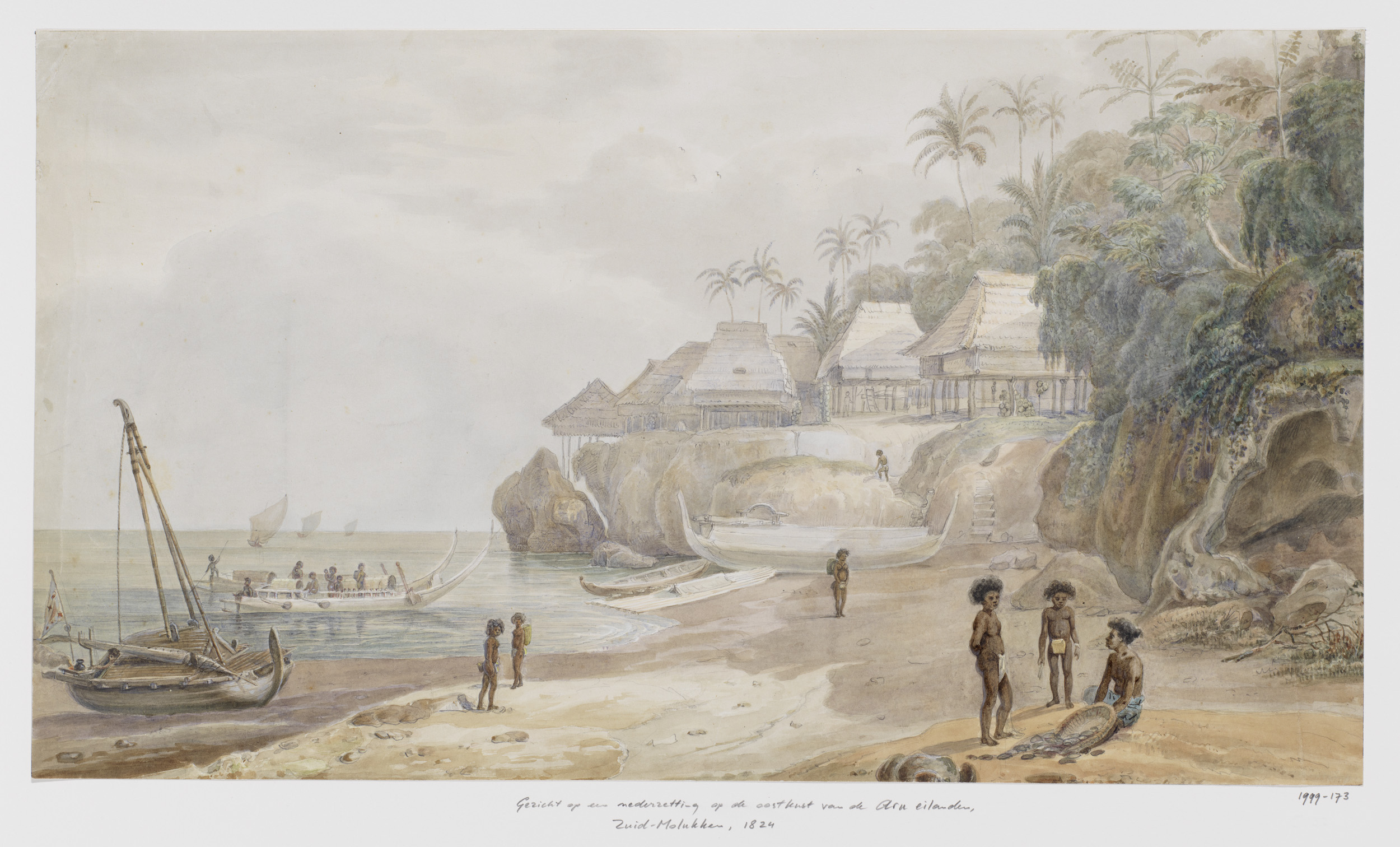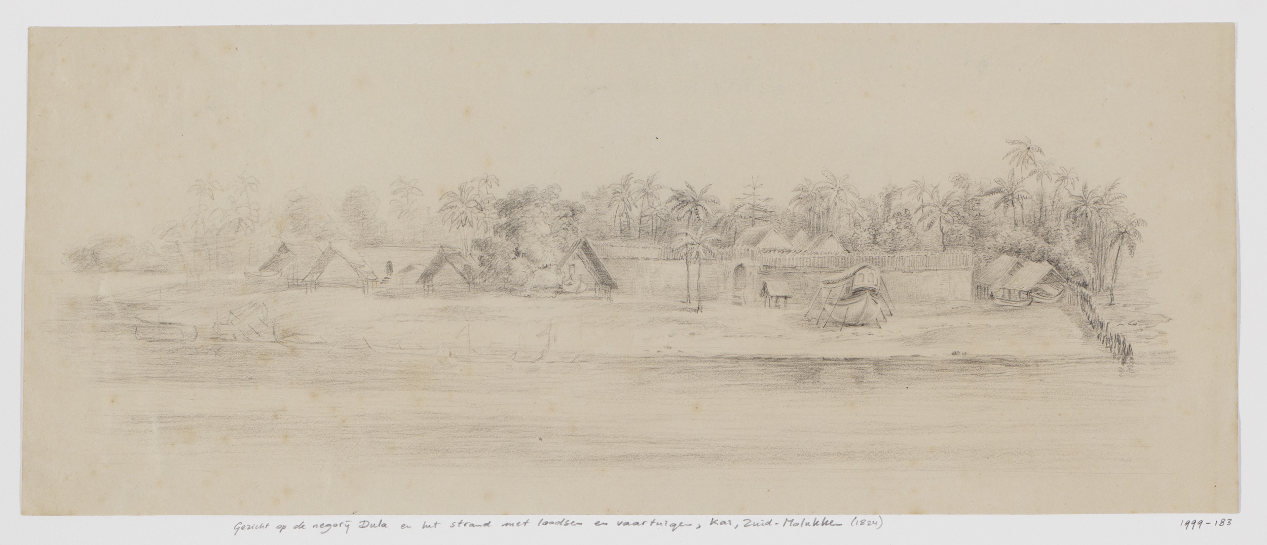 Gezicht op dorp en huis van de raja van Kisar, Zuid-...