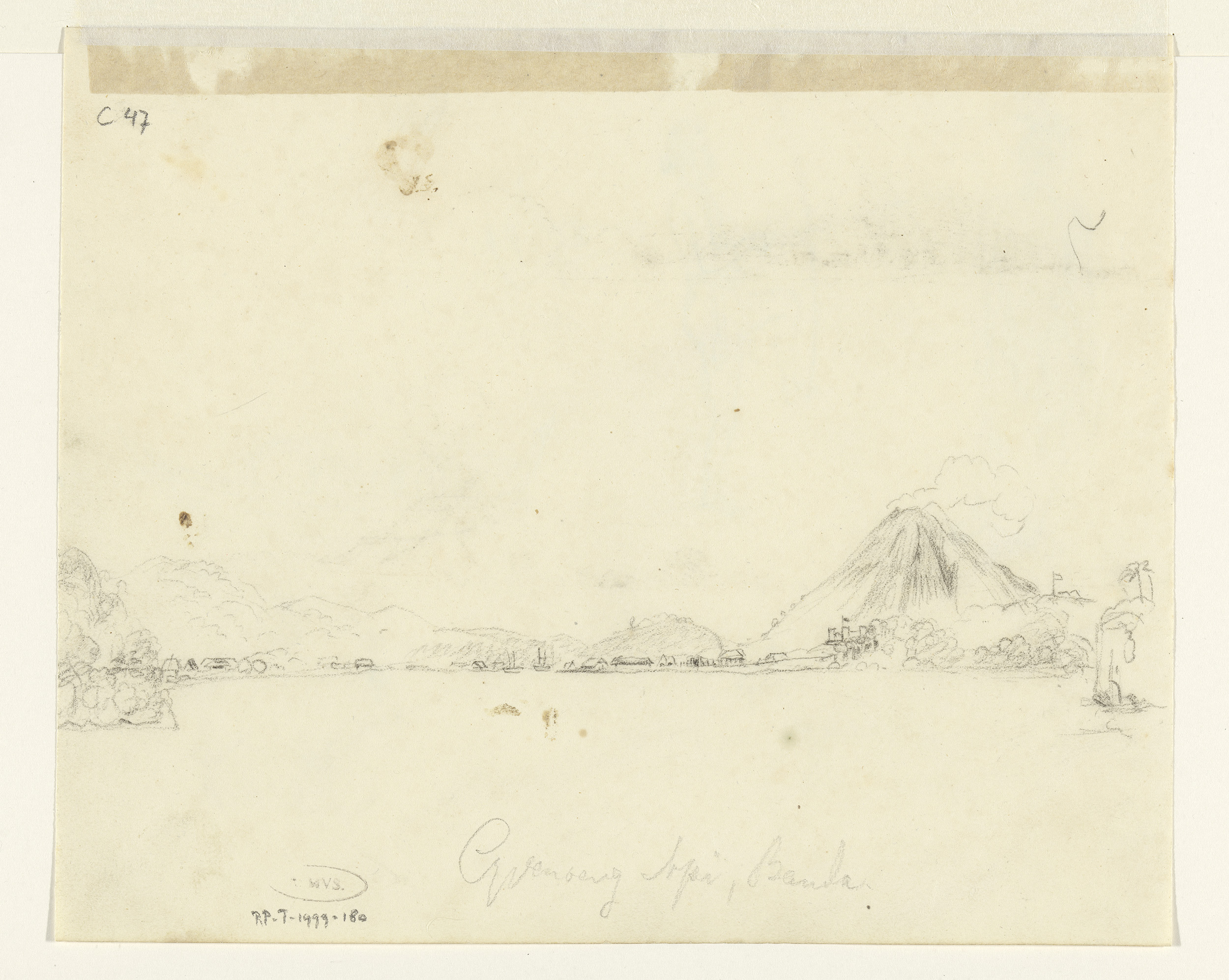 Gezicht vanuit Lontar op Banda Neira en rokende Gunu...