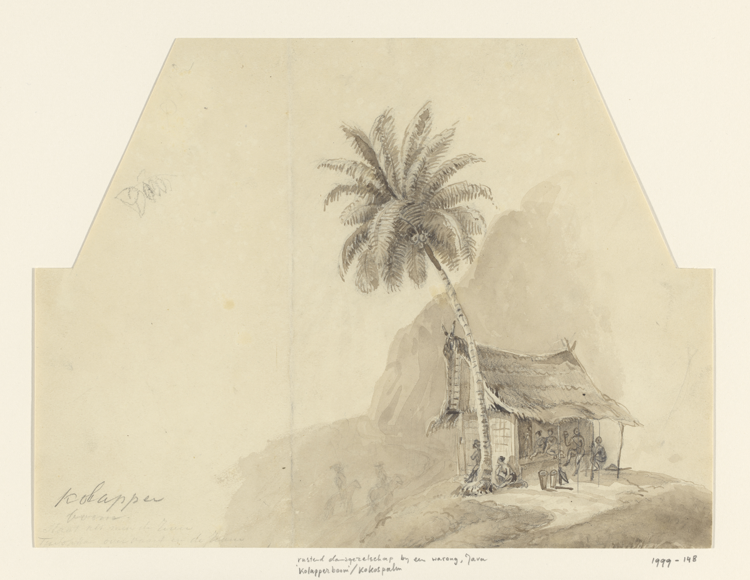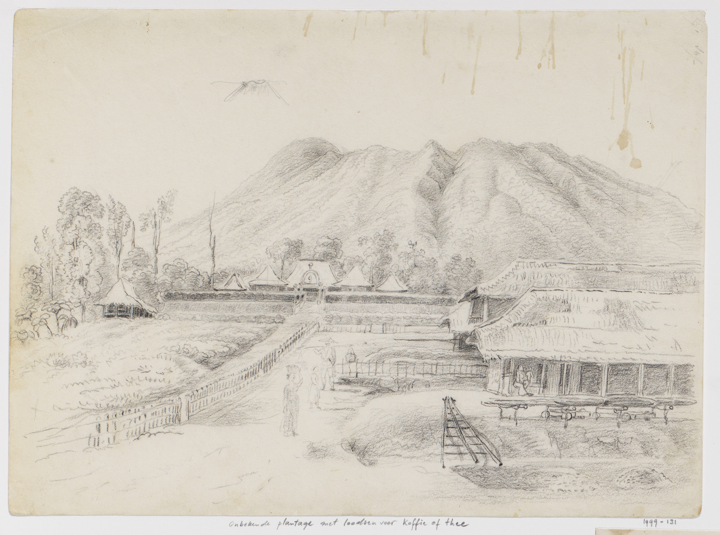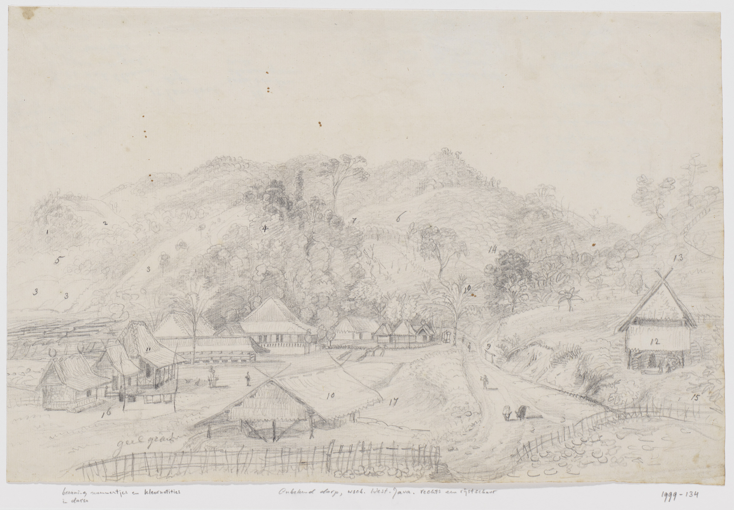 Javaans dorp (hoofdnegorij) met links een Europees h...