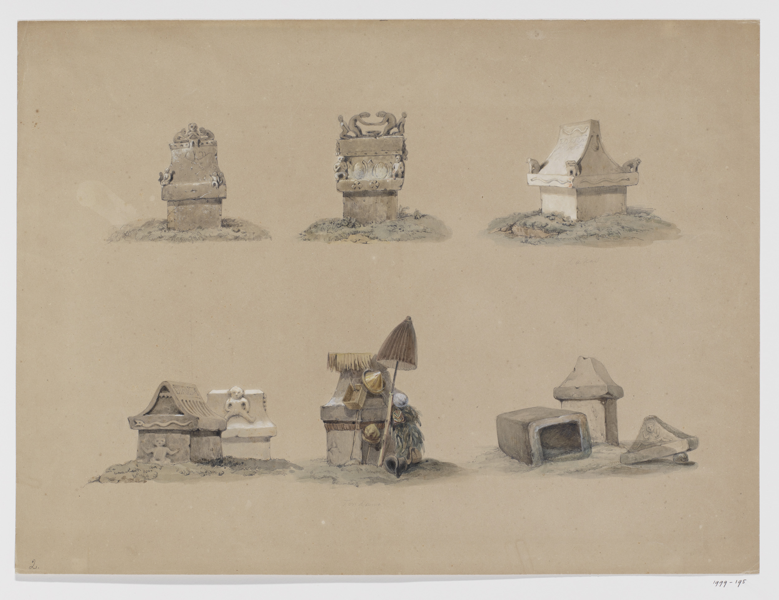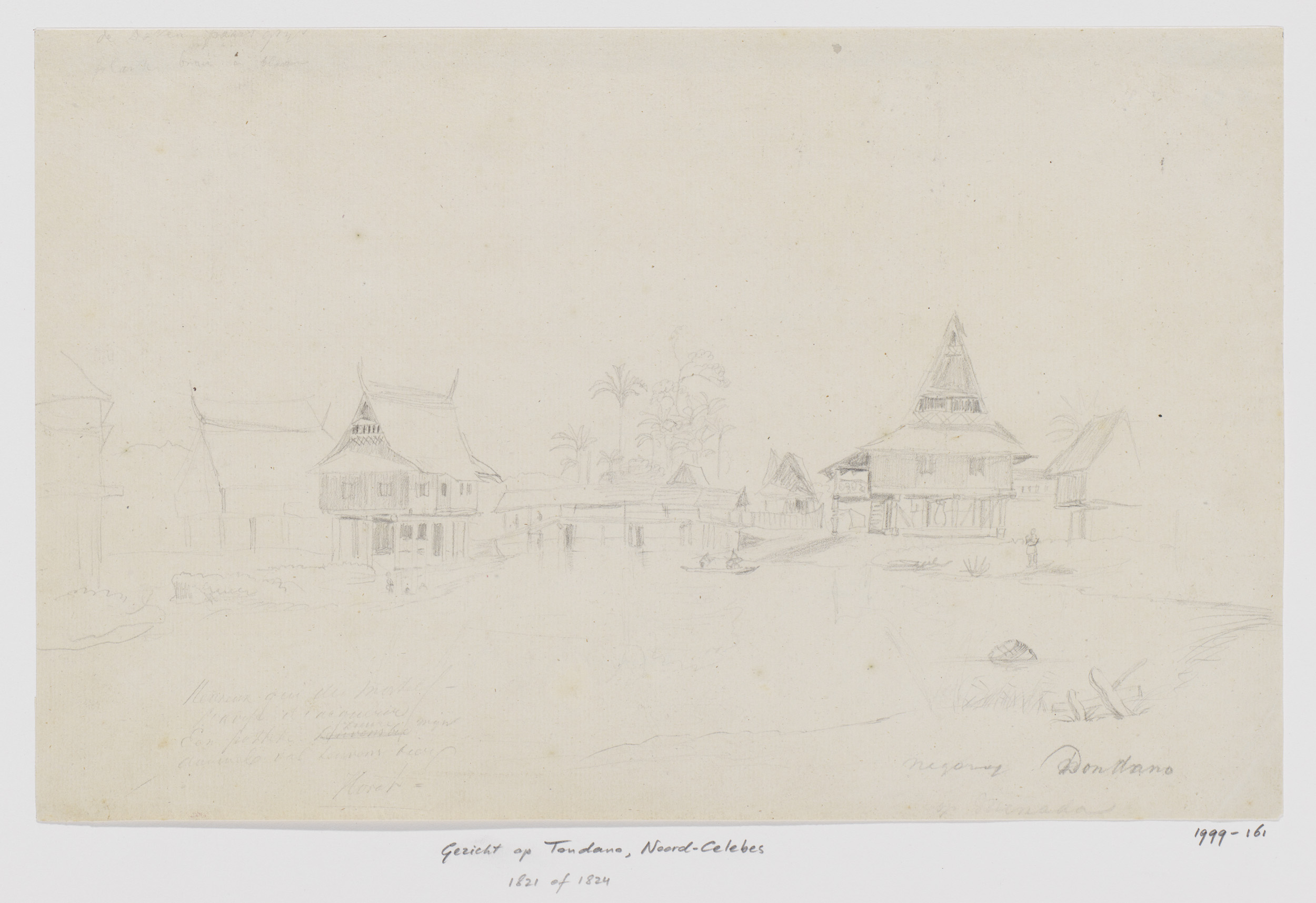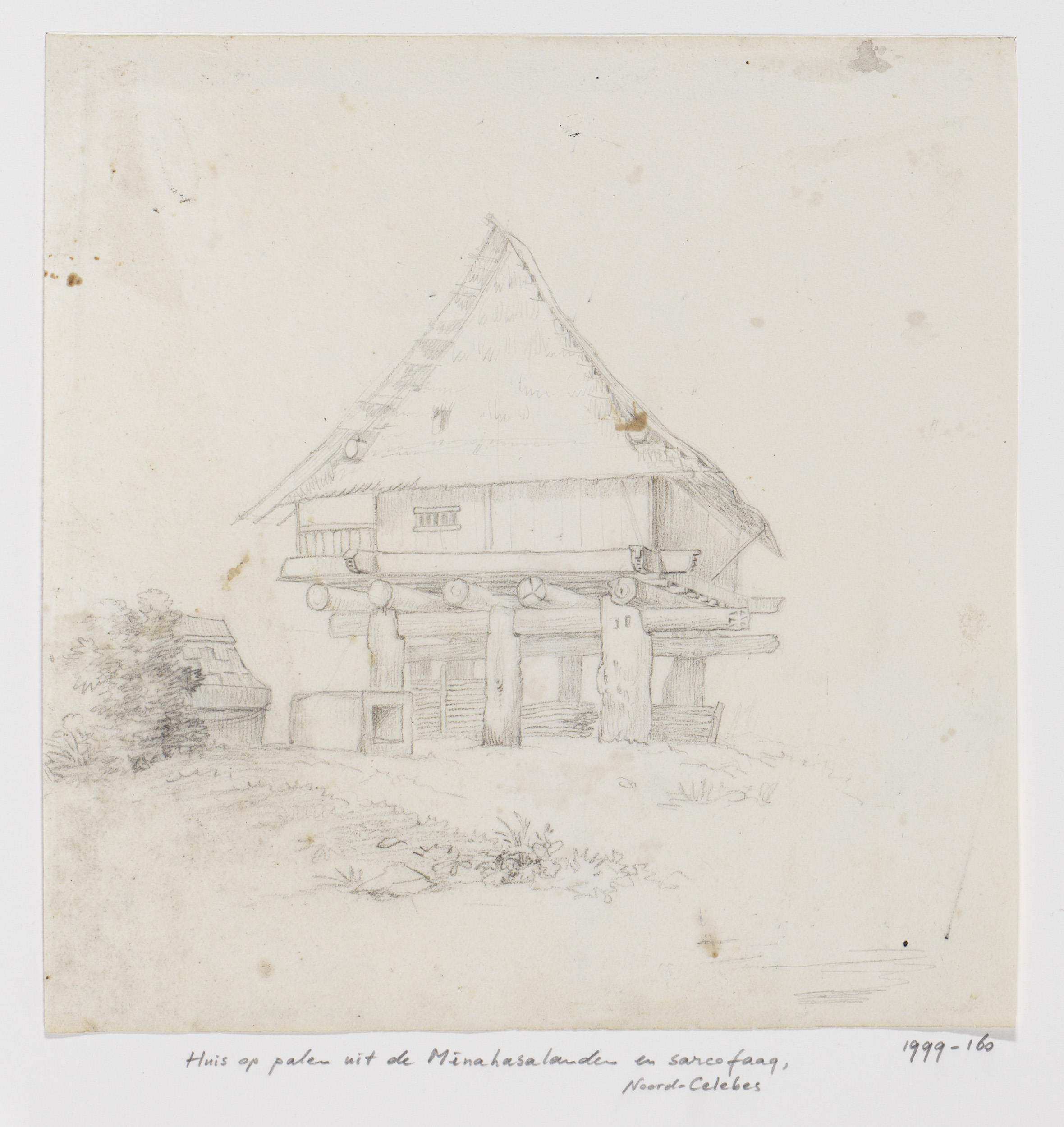 Huis op palen uit de Minahasalanden en sarcofaag, No...