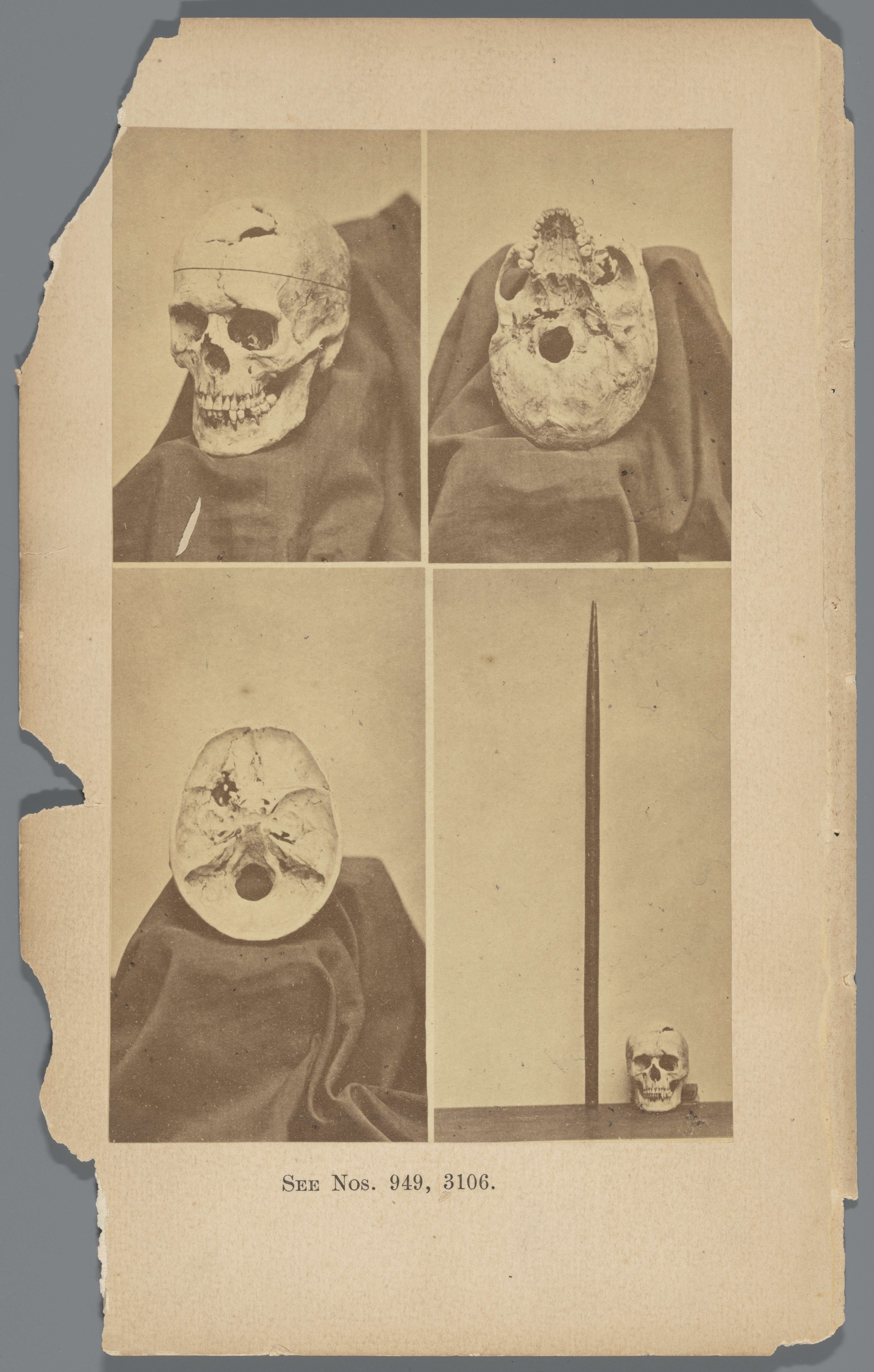 Vier aanzichten van de schedel van Phineas Gage